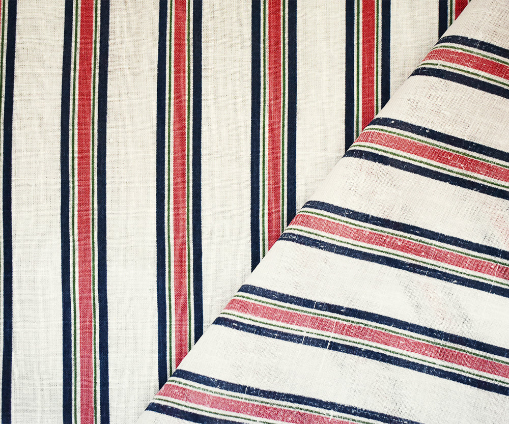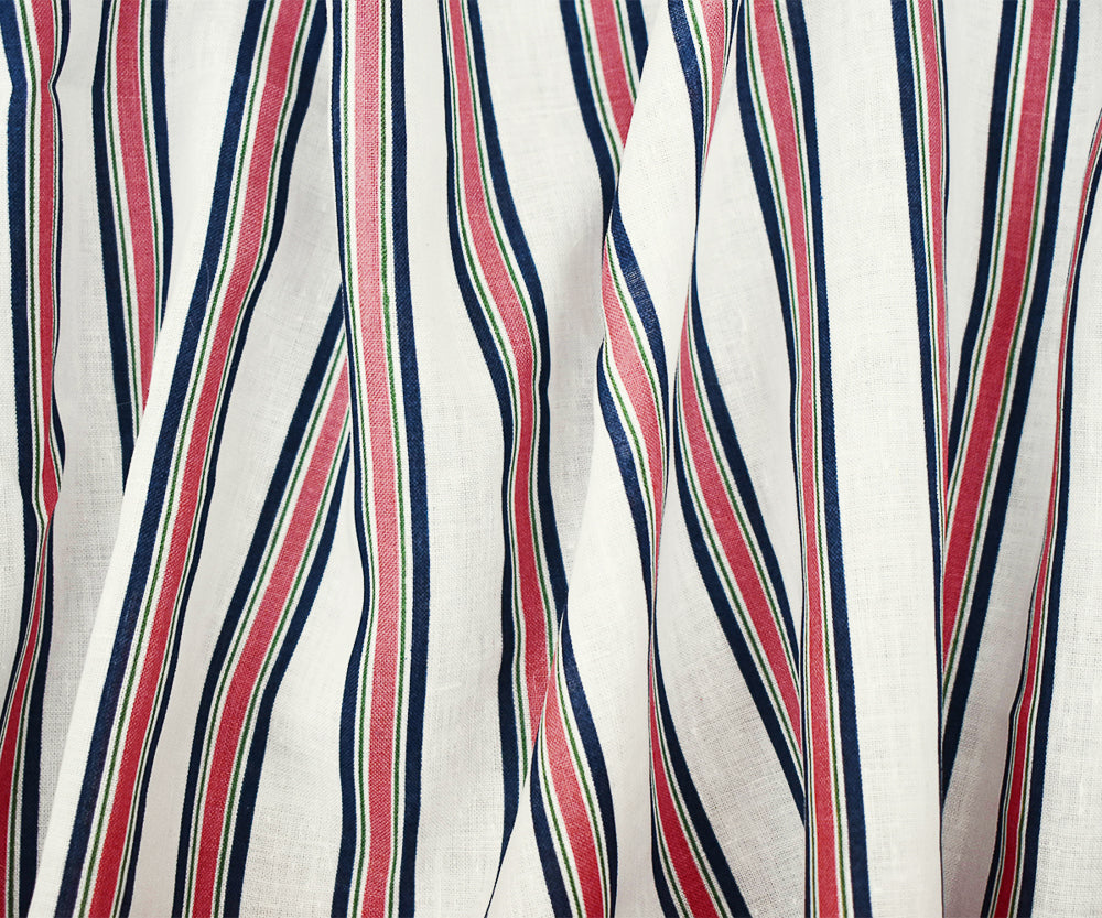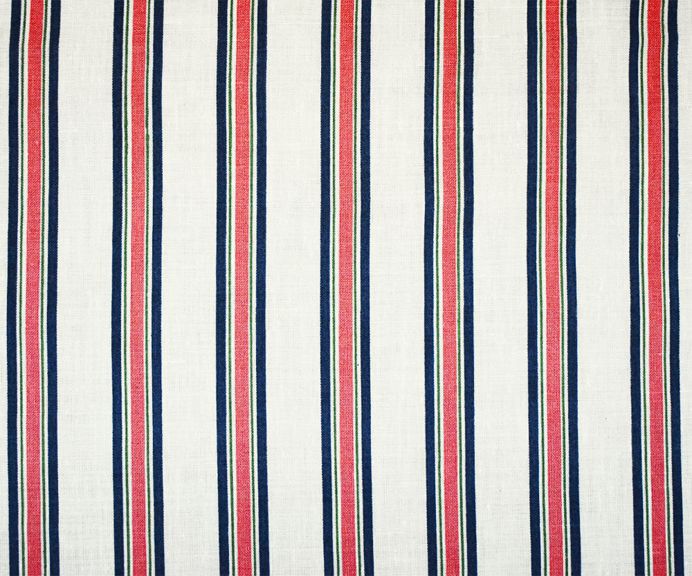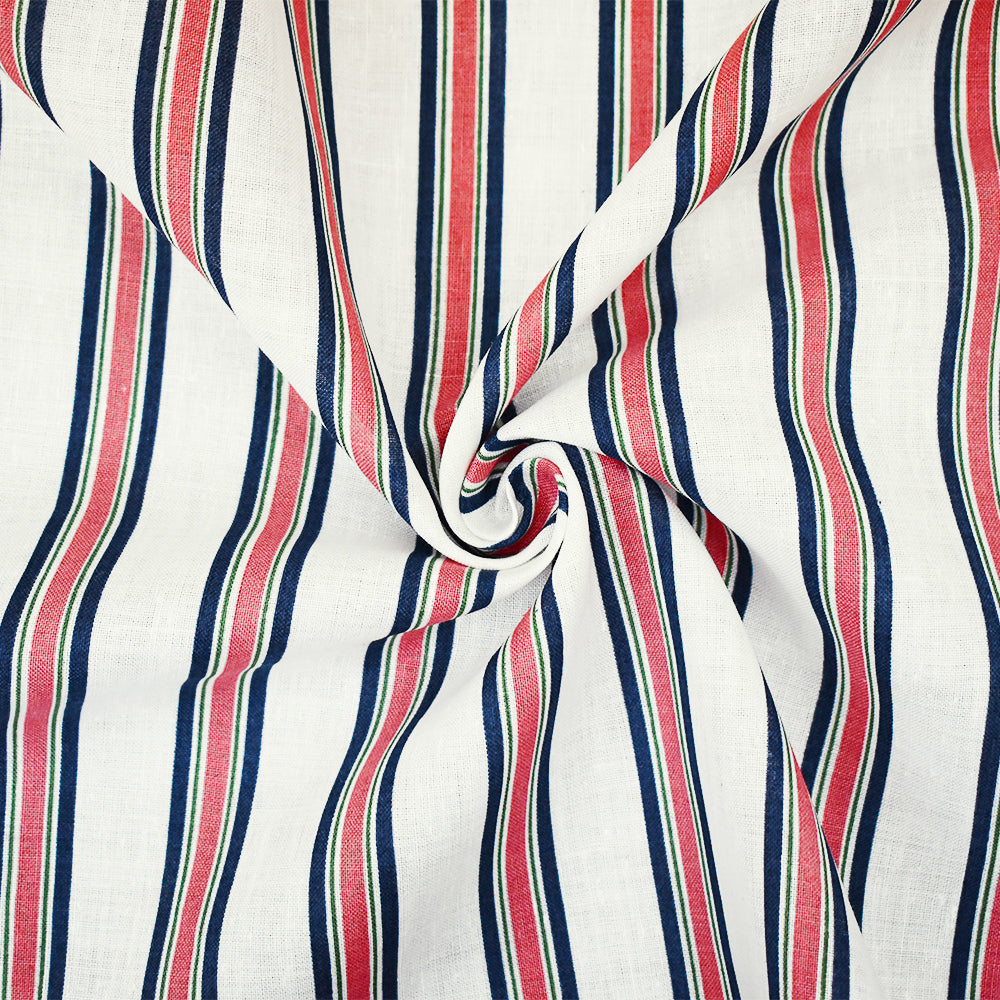 White-Coral Pink-Multi Stripe Printed Linen Woven Fabric