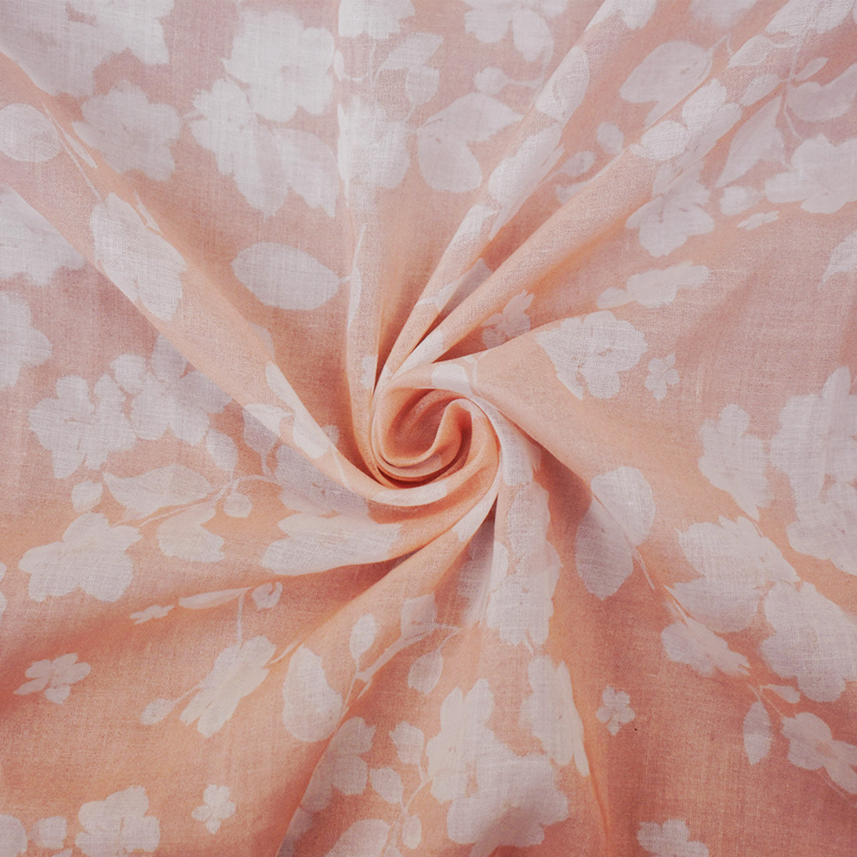 Coral Pink-White Famous Maker Cotton Floral Printed Lawn Woven Fabric