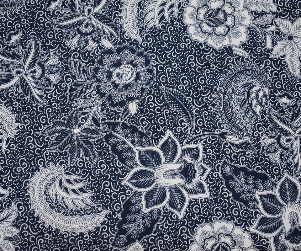 Indigo-White Famous Designer Floral Printed Lawn Woven Fabric