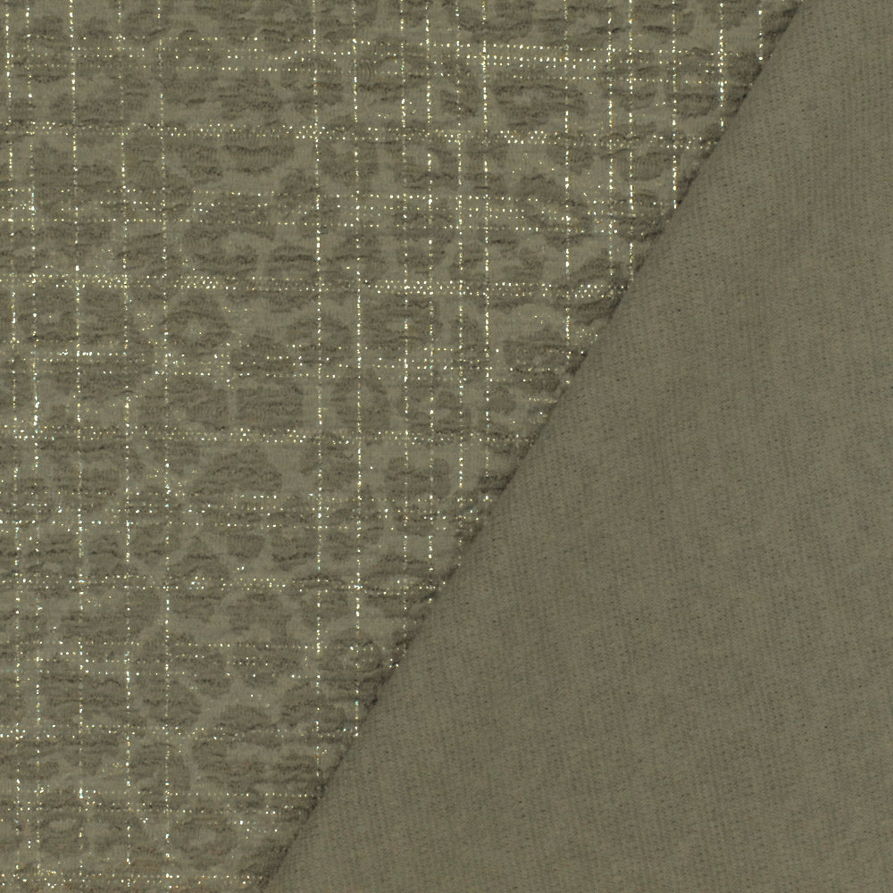 Green-Silver Crinkle Leopard Metallic Plaid Stretch Double Knit Fabric