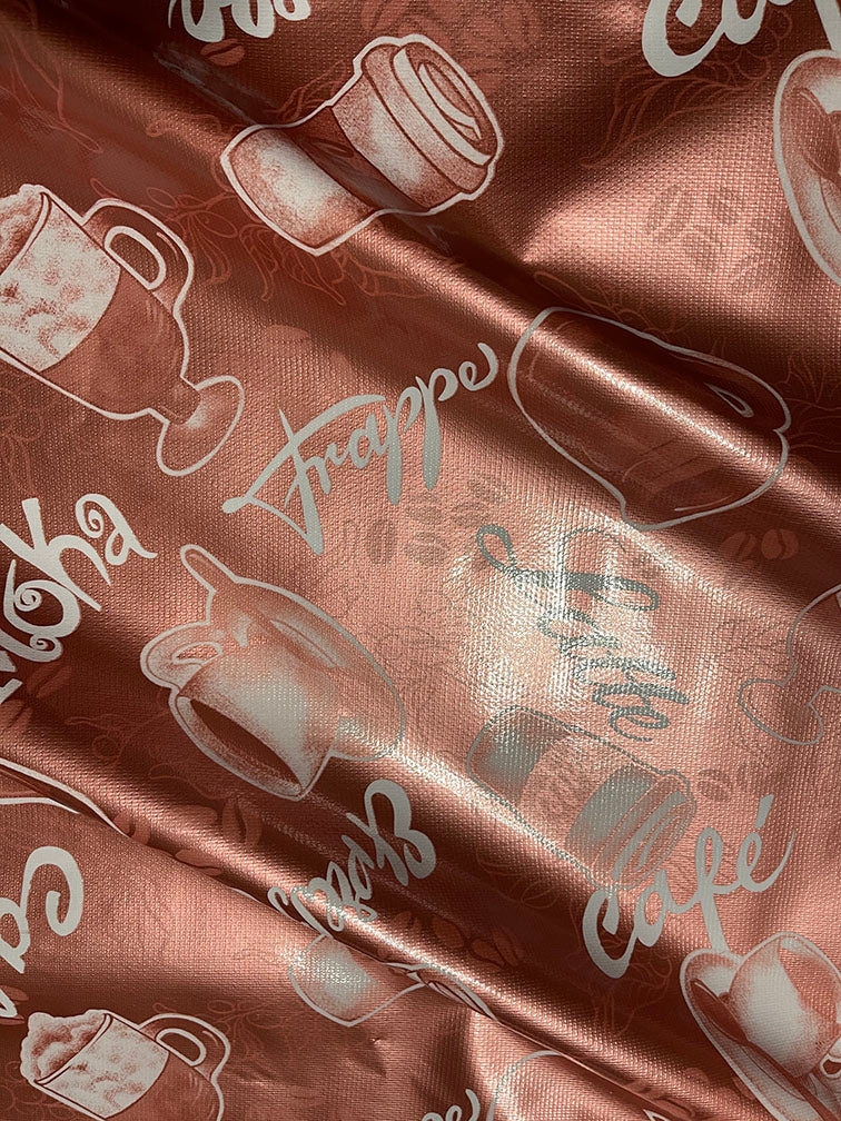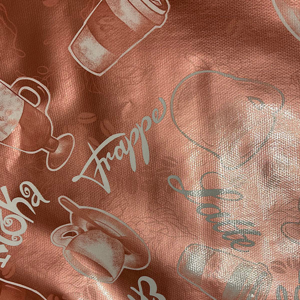 Metallic Rose and White Coffee Print Oilcloth Fabric