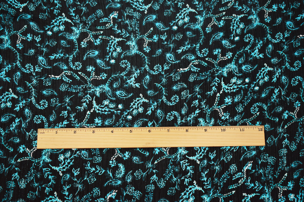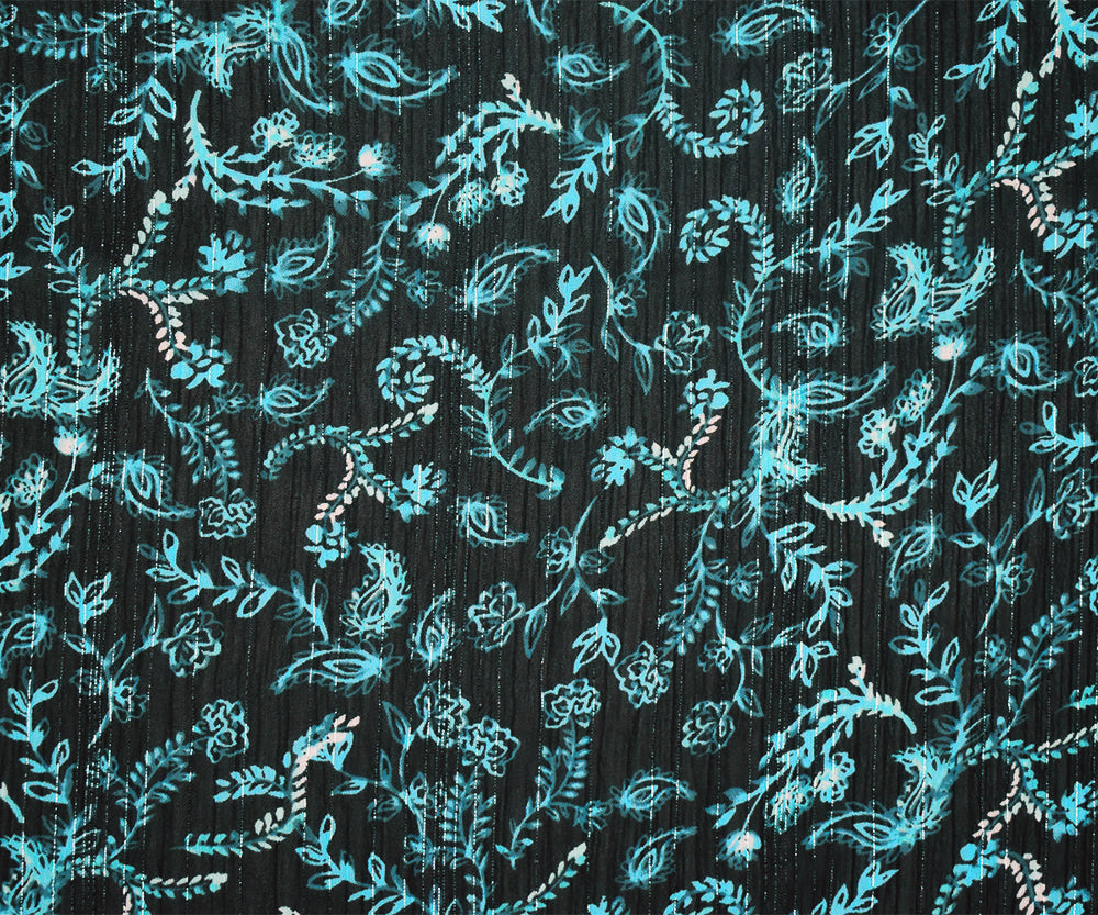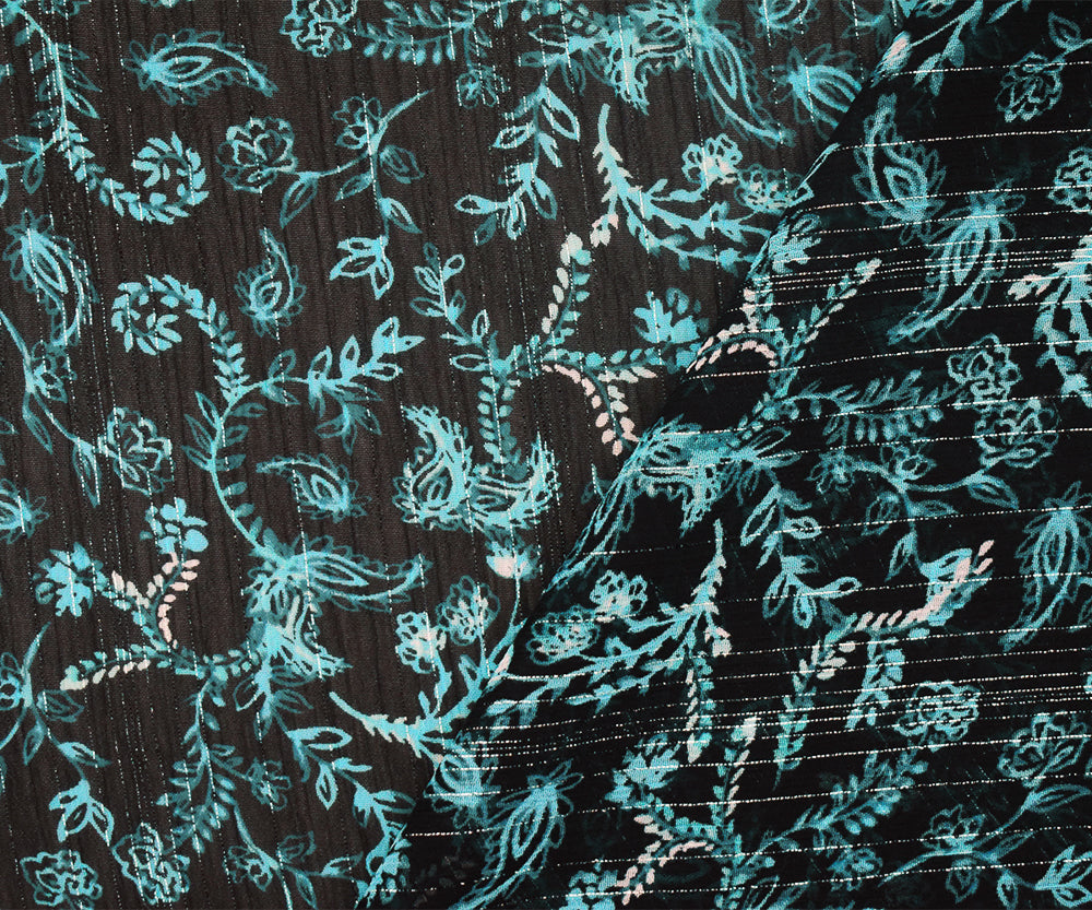 Navy-Silver-Multi Vine Printed Poly Yoryu Metallic Stripe Chiffon Fabric