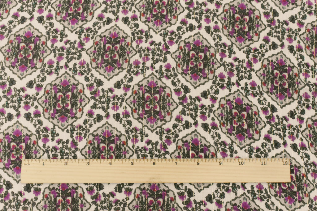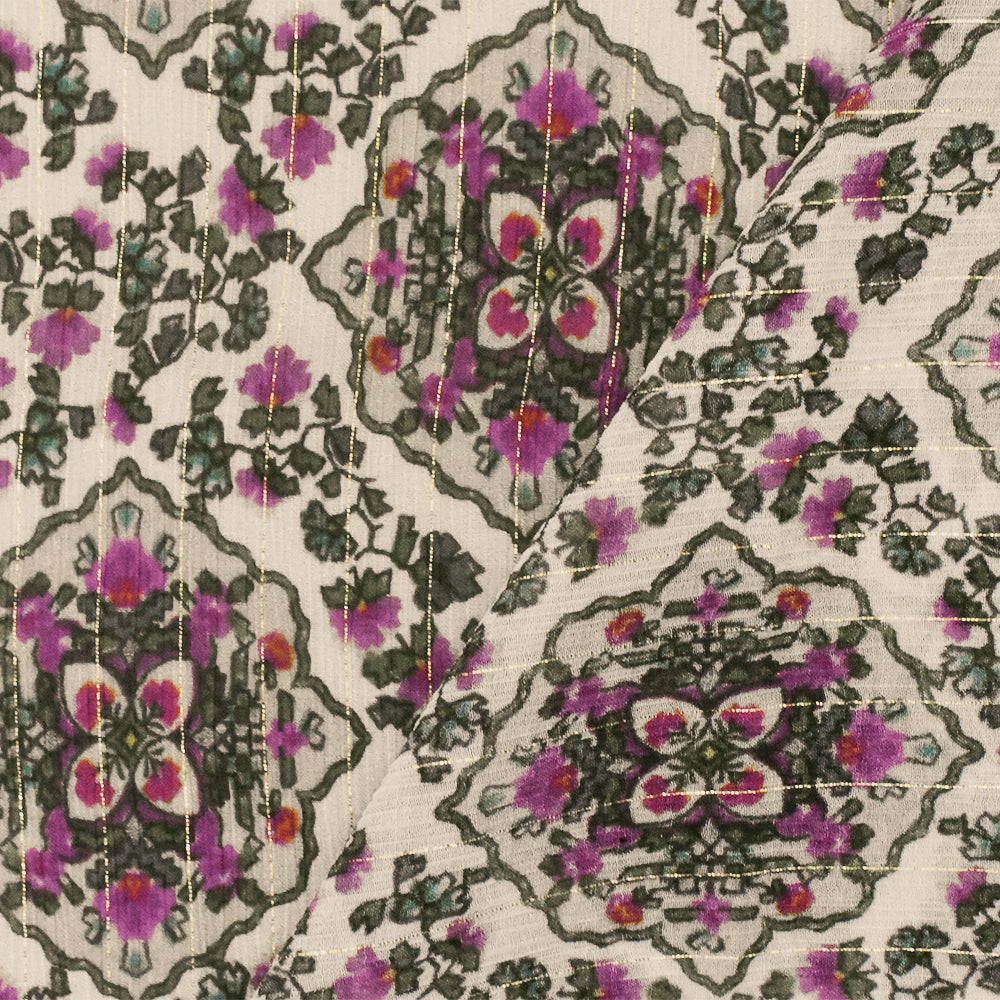 Purple-Multi Famous Designer Viscose Silk Printed Crinkled Chiffon Fabric
