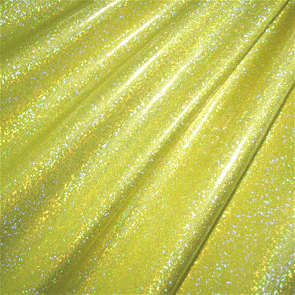 Metallic Silver Hologram Mini Dot Print on Yellow Spandex Fabric 4 Way Stretch Suitable for Dancewear, Apparel, & Costumes 80% Nylon 20% Spandex 58" Wide