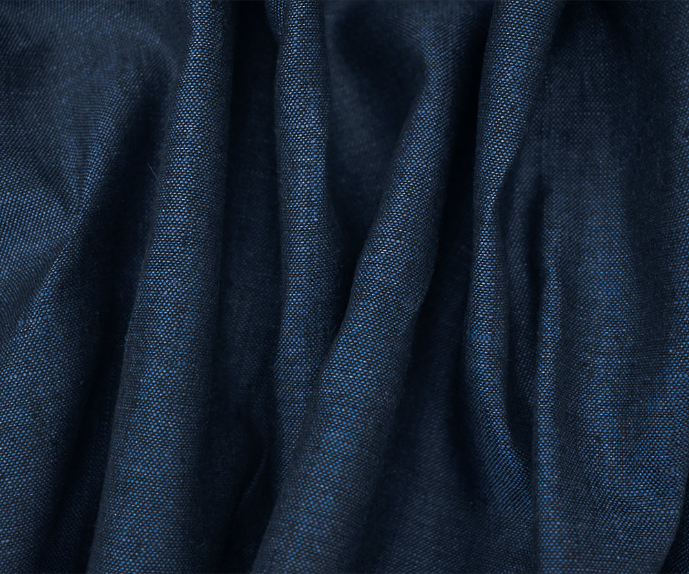 Black-Blue Spence Bryson Slub Texture Irish Linen Chambray Woven Fabric