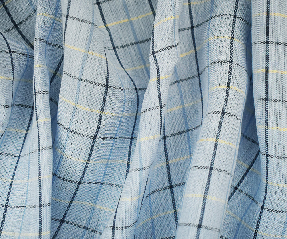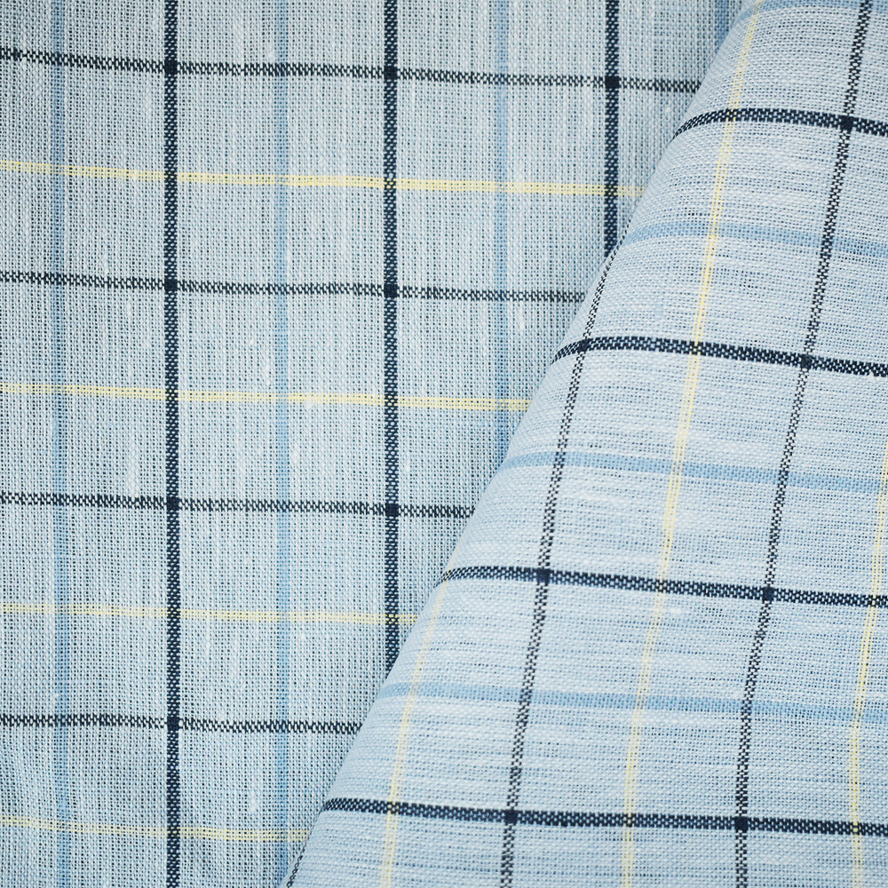 Blue-Yellow-Multi Spence Bryson Check Plaid Irish Linen Slub Woven Fabric