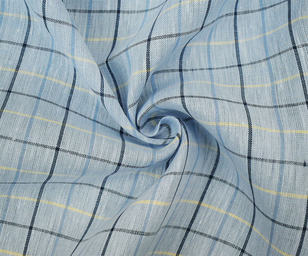 -150 gsm Spence Bryson Katesbridge 100% Linen yarn dyed check grid-like pattern woven with a soft sanforised finish. Line if needed. Made in Ireland.