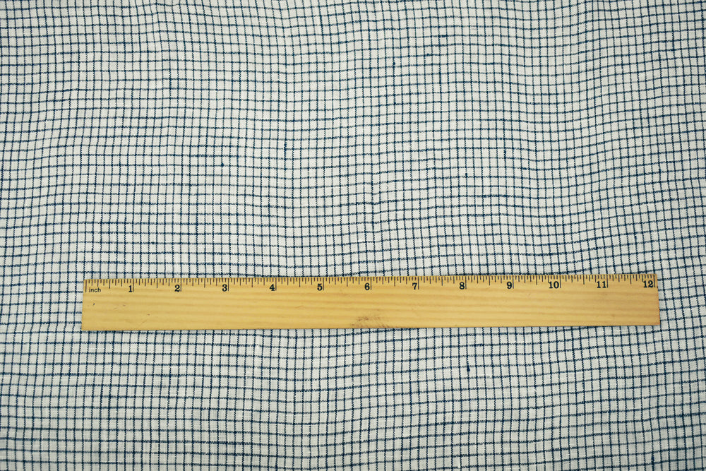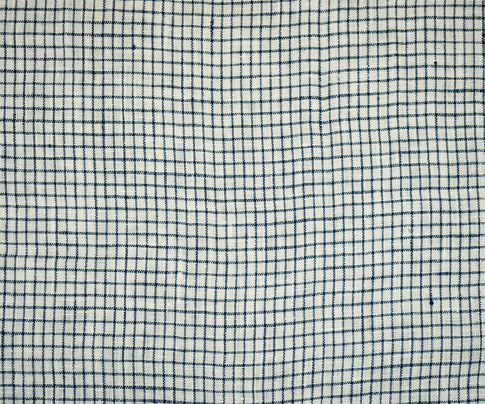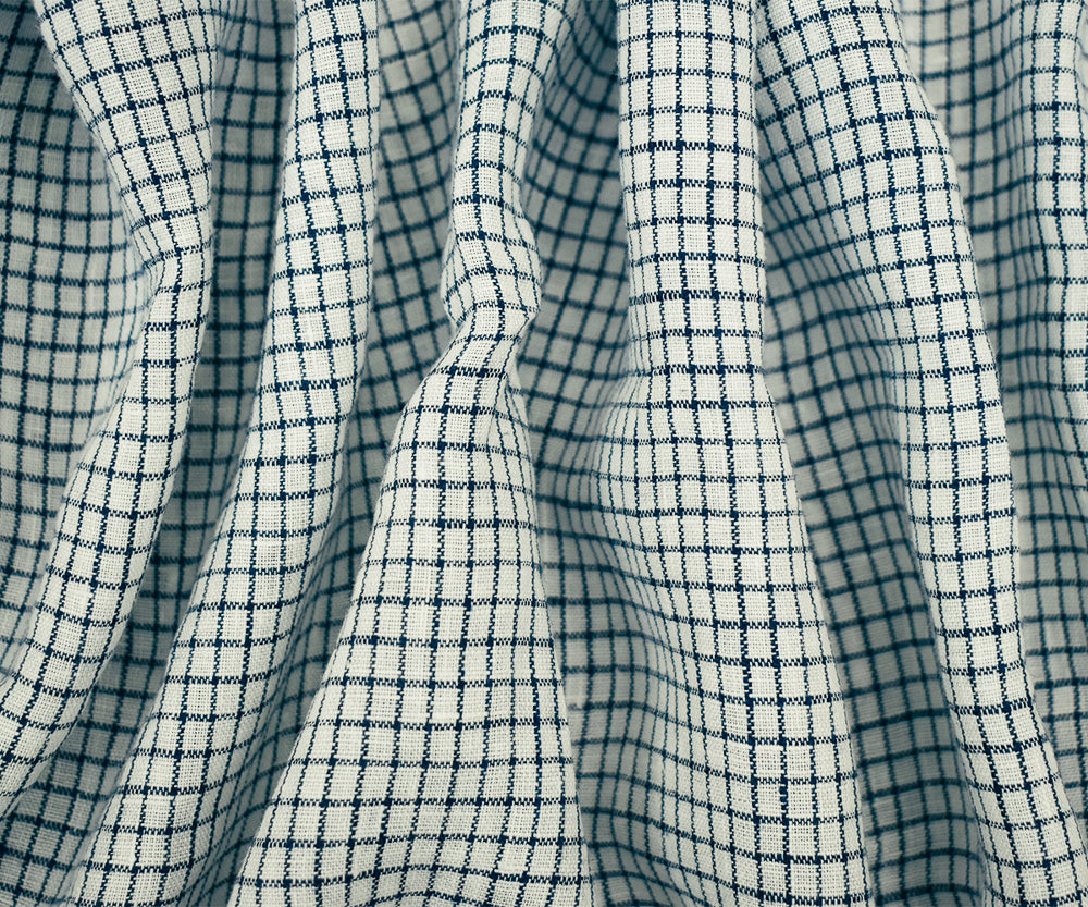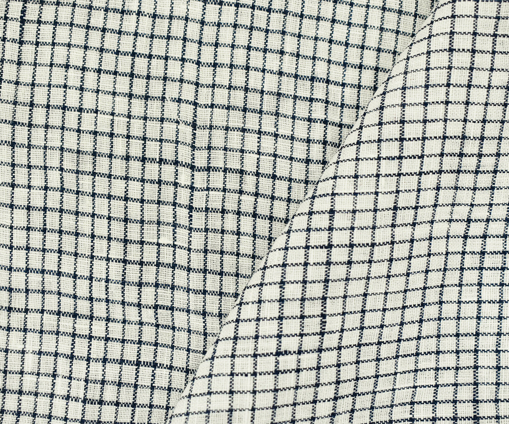 Dark Navy-White Spence Bryson Grid Check Washed Irish Linen Woven Fabric