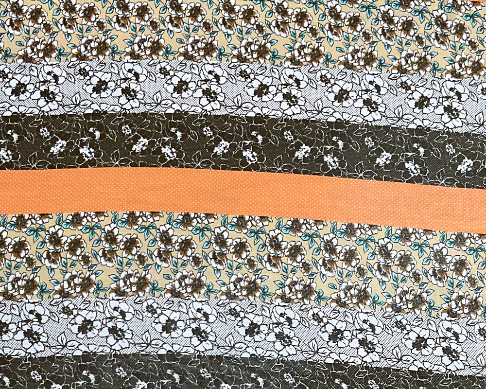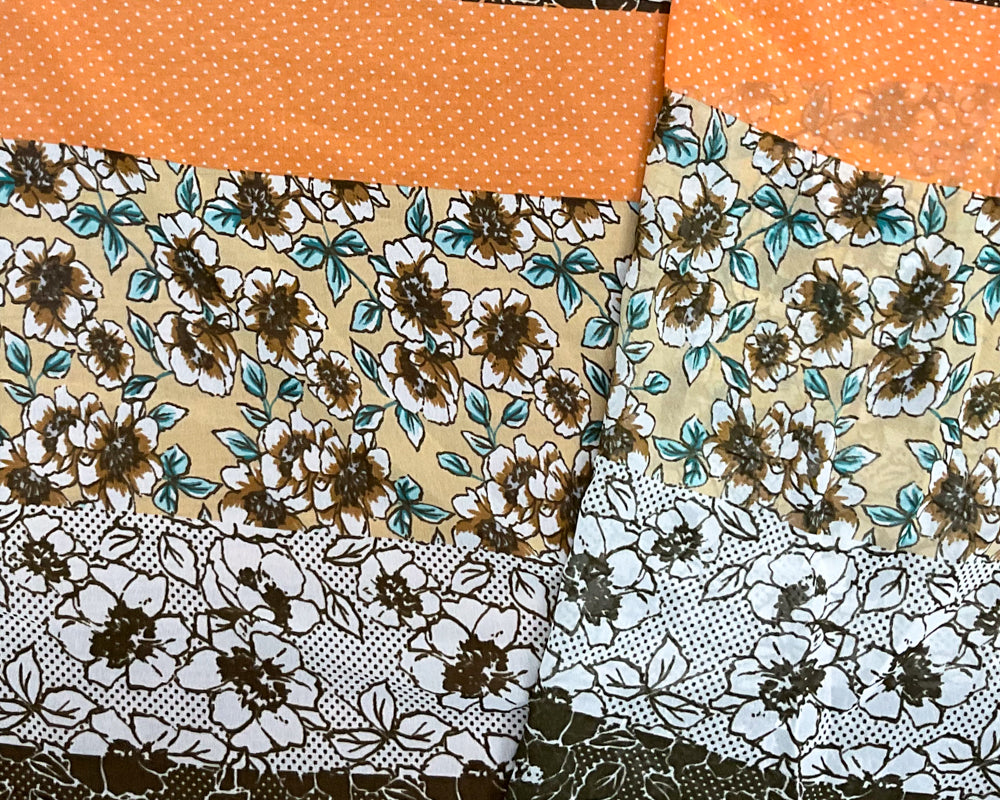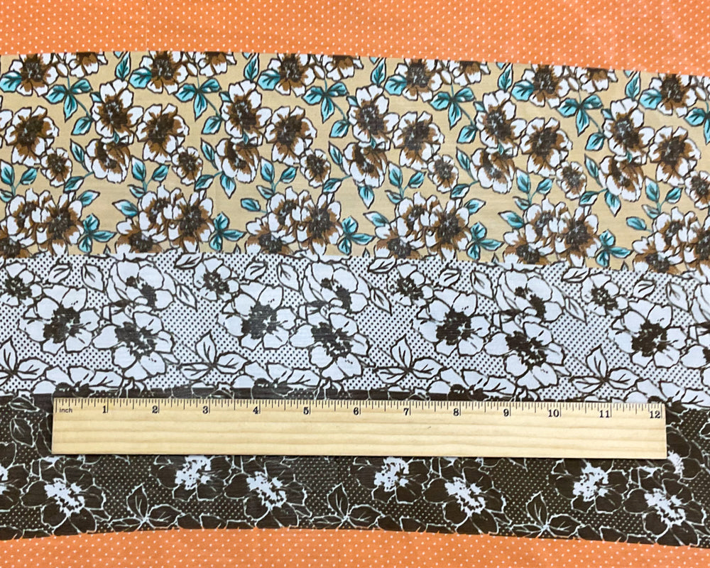 Beige-Orange-Multi Poly Stripe Floral Printed Chiffon Woven Fabric
