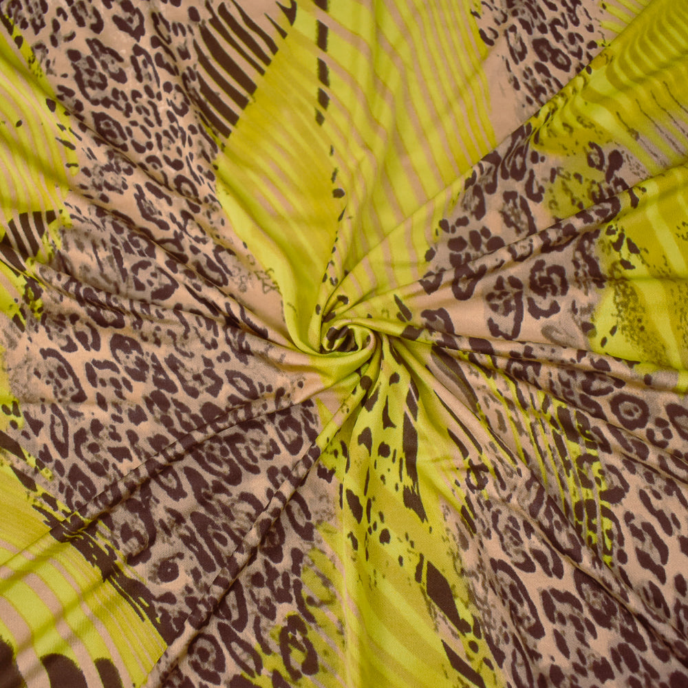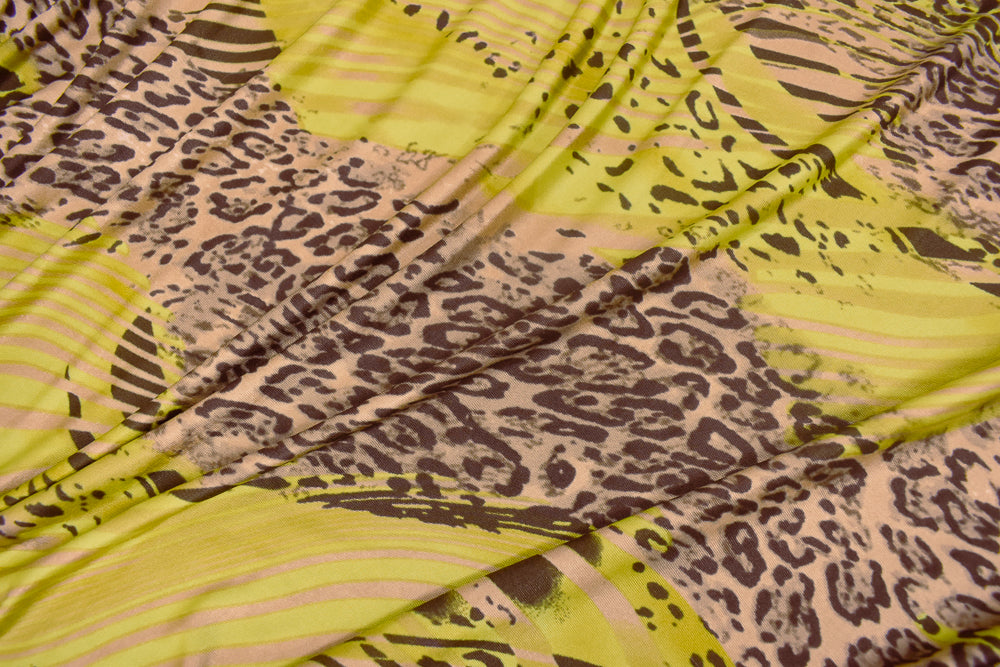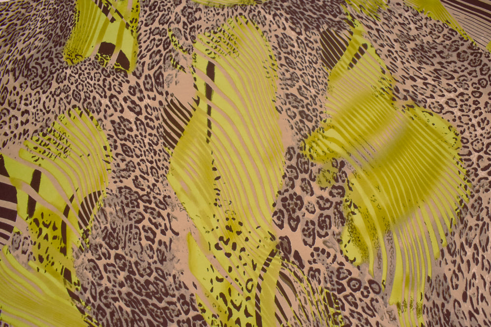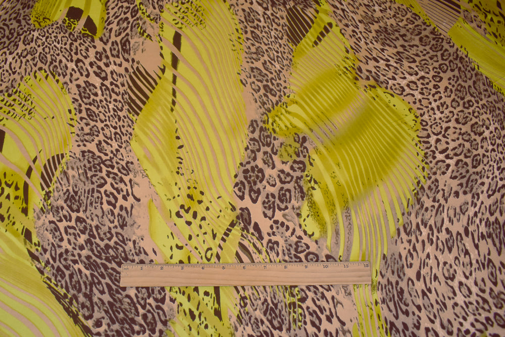 Beige-Yellow-Multi Cheetah Stripes Printed Stretch Silk Jersey Knit Fabric