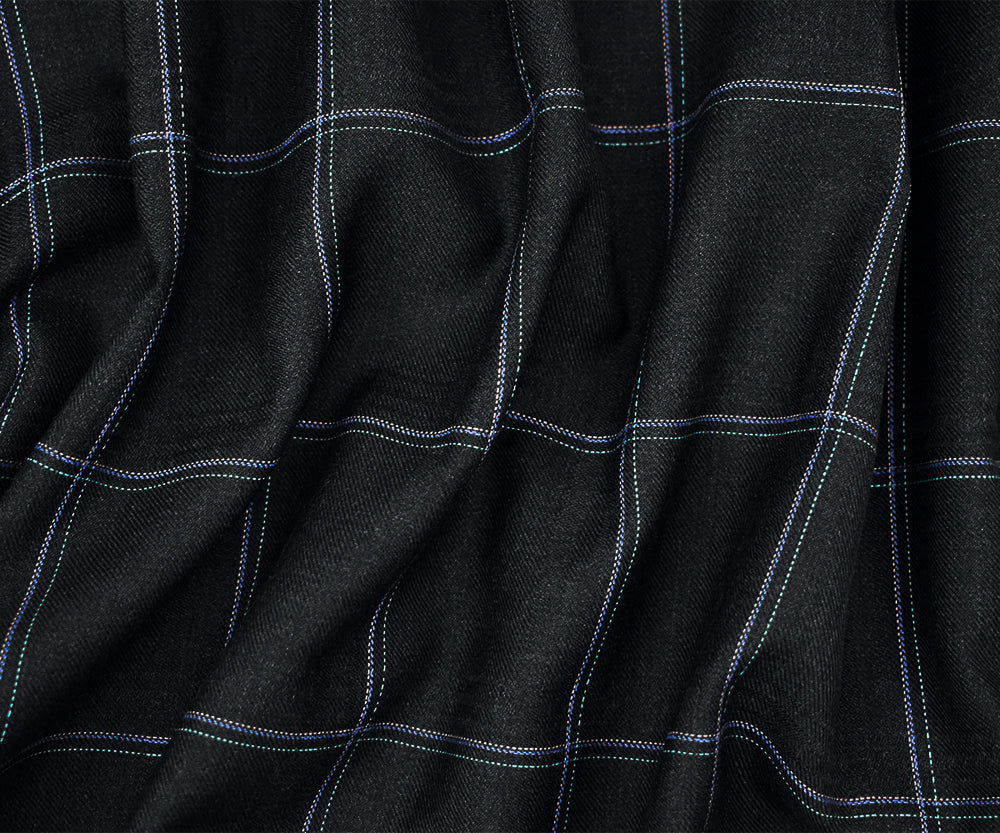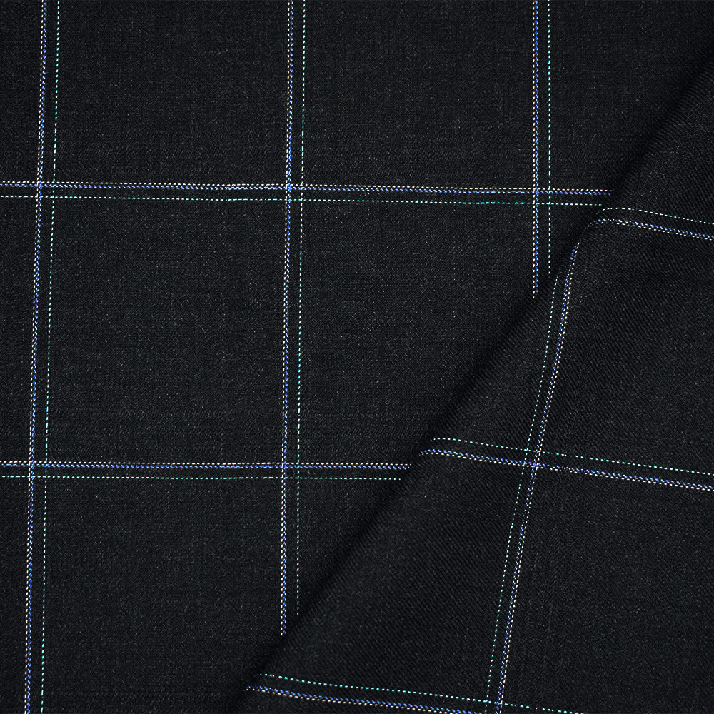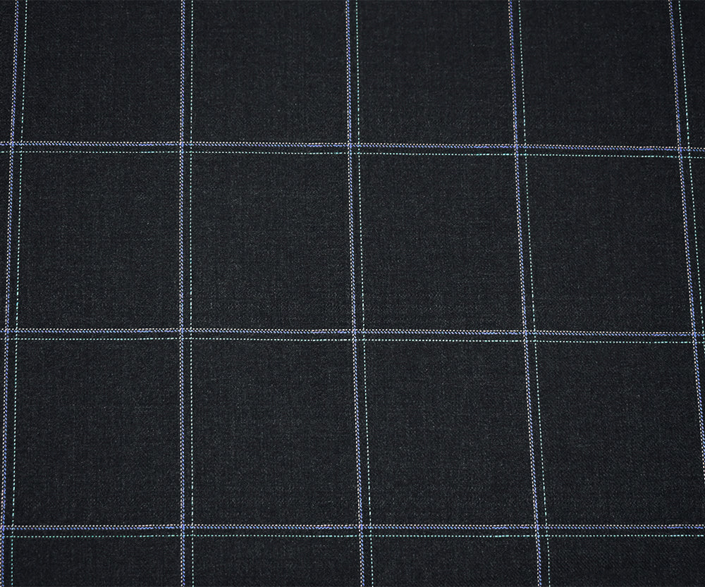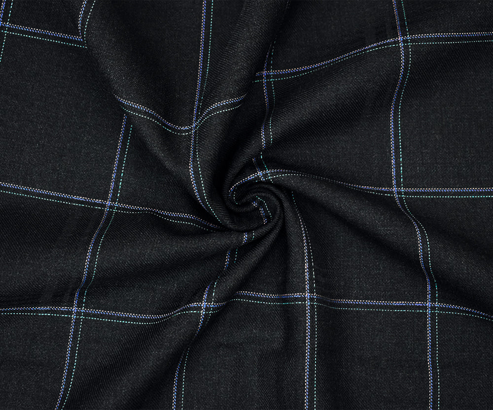 Black-Pink-Blue Polyester Wool Grid Plaid Twill Woven Shirting Fabric