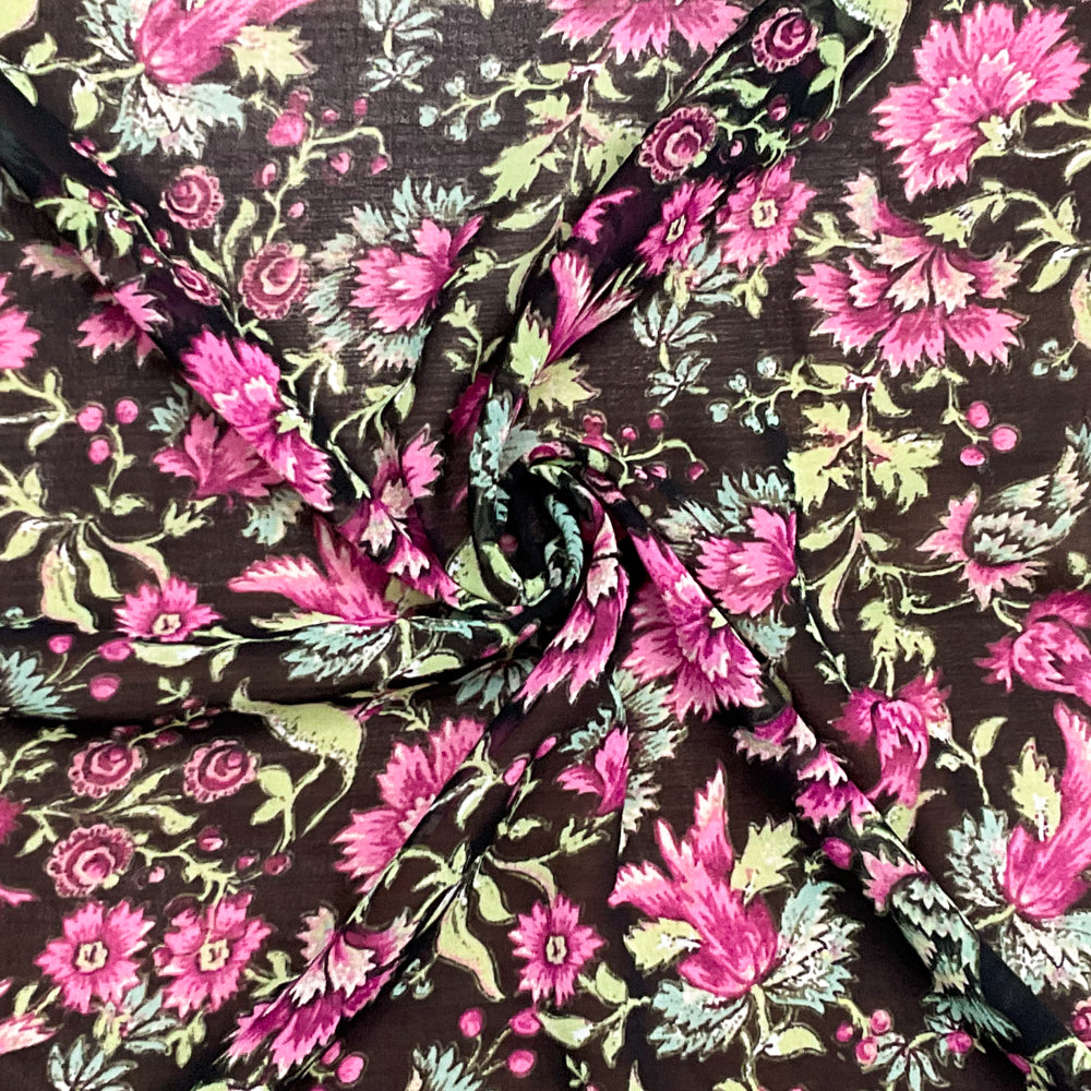 Black-Pink-Multi Poly Floral Printed Chiffon Woven Fabric