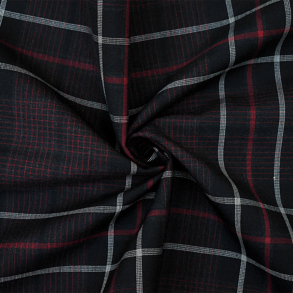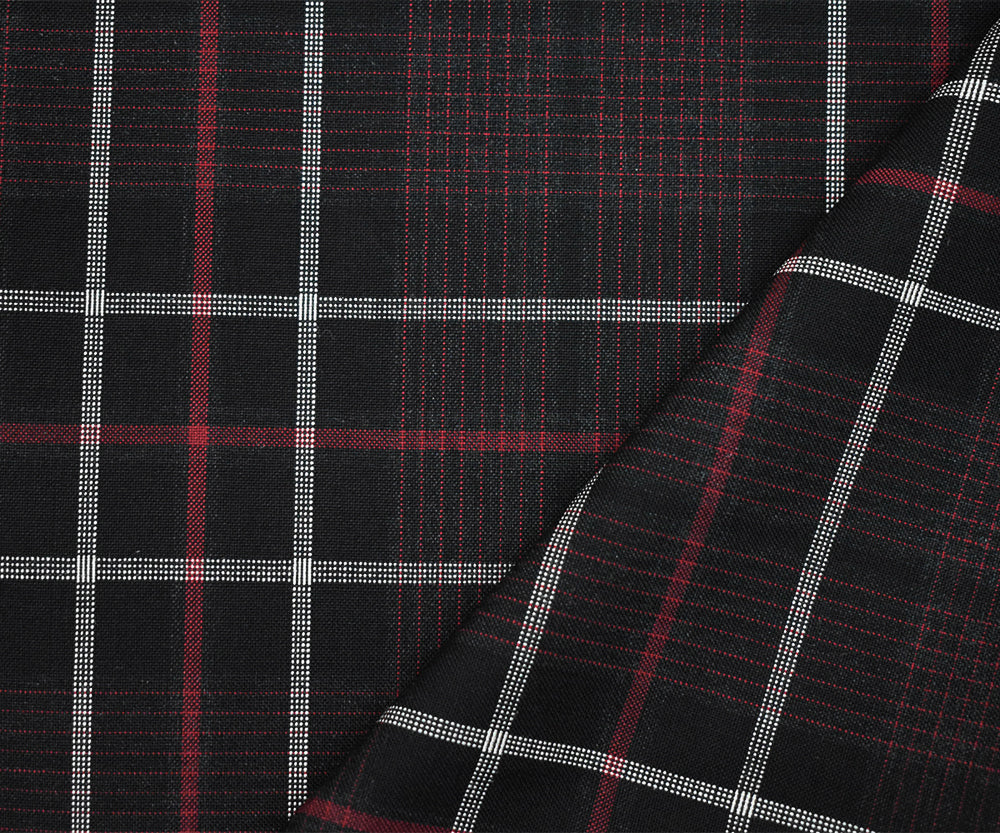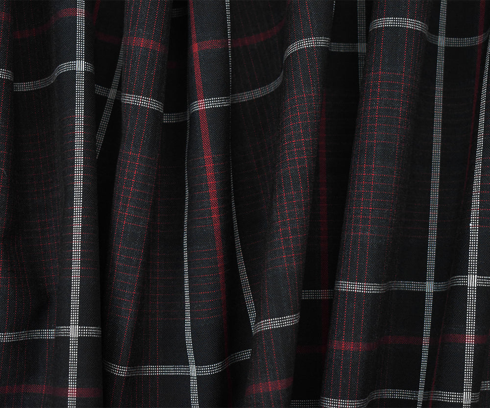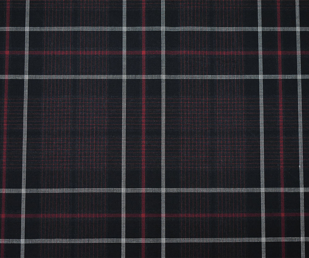 Black-Red-White Wool Polyester Plaid Shirting Woven Fabric