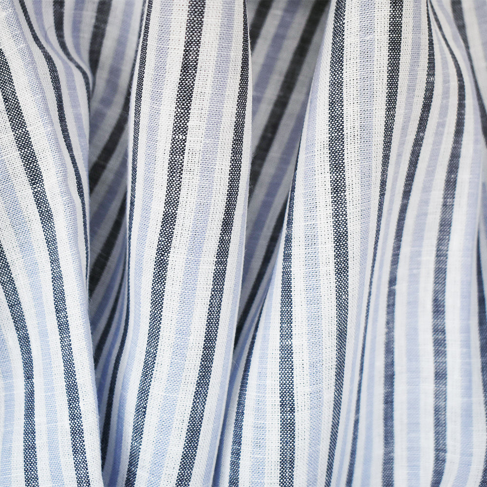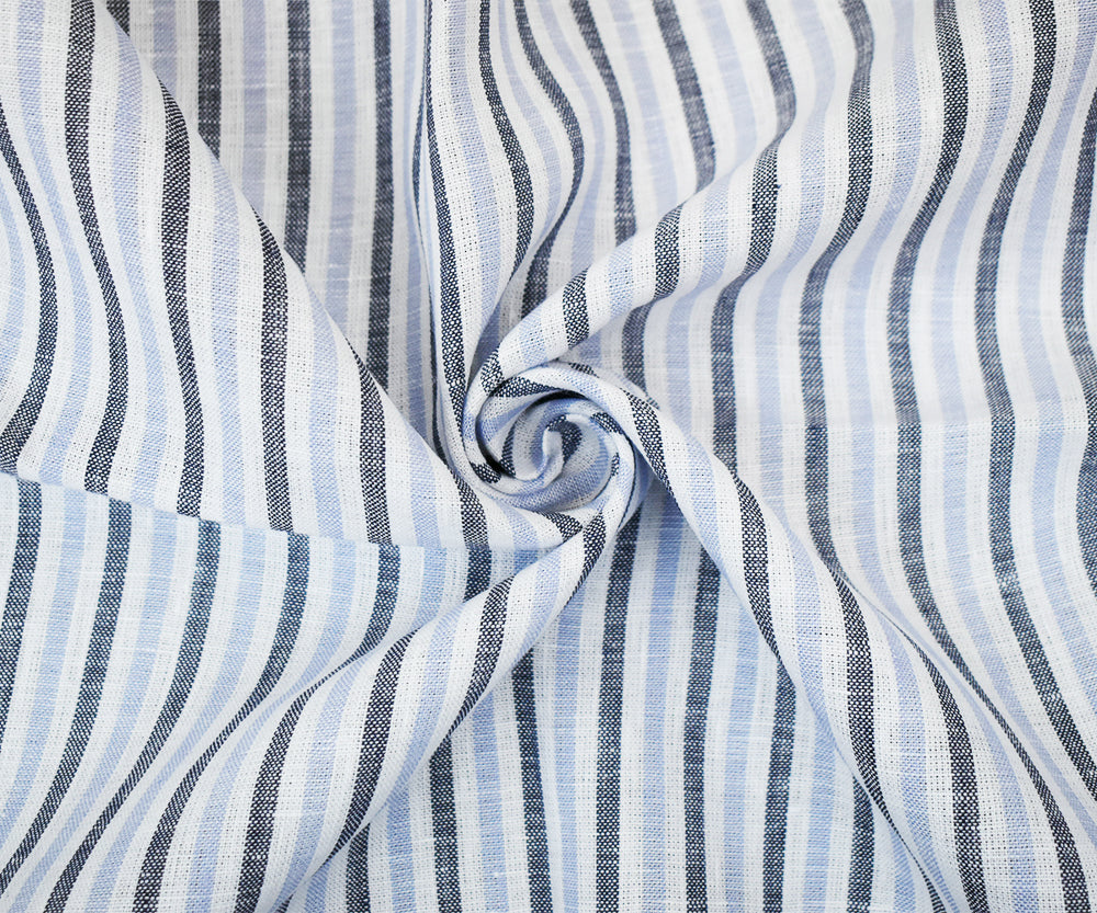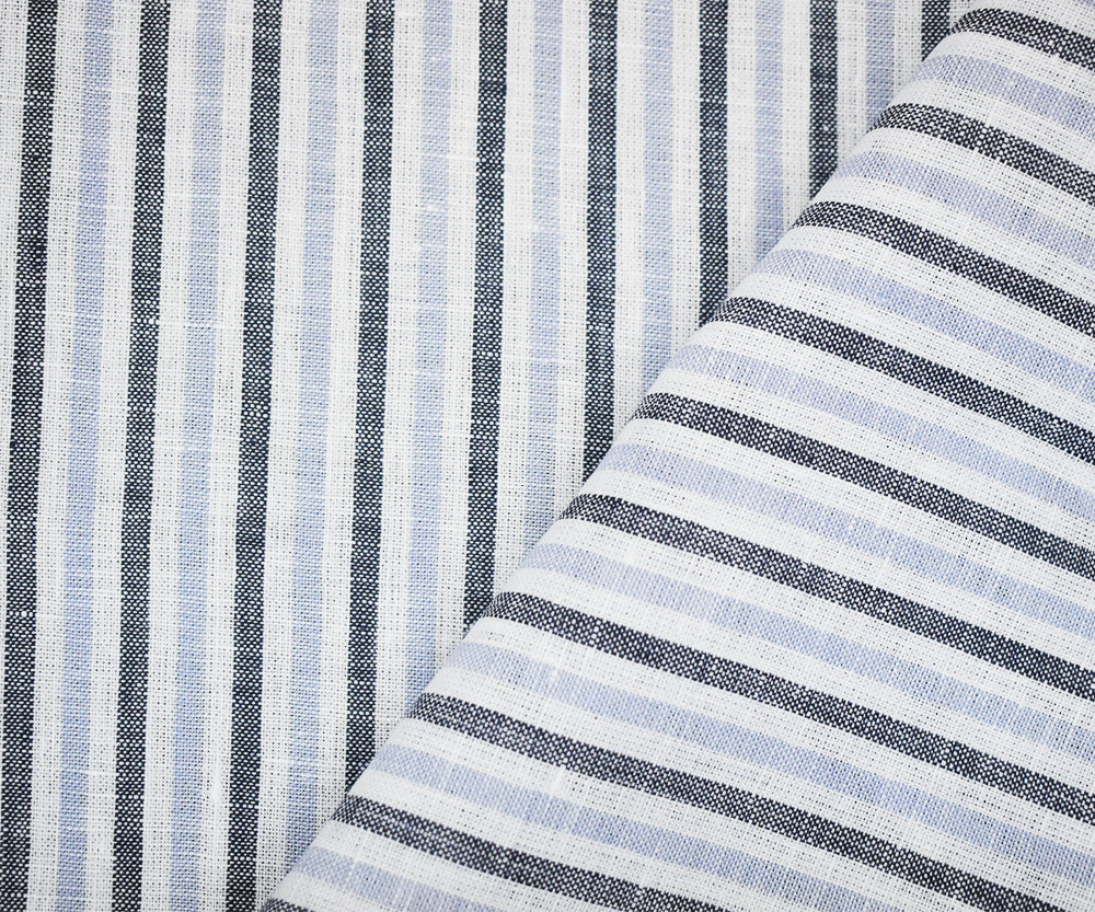 Blue-Gray-White Spence Bryson Striped Irish Linen Woven Fabric