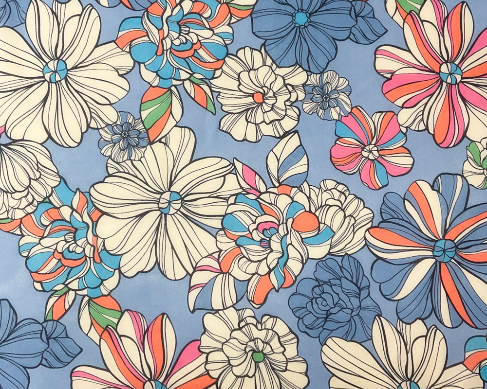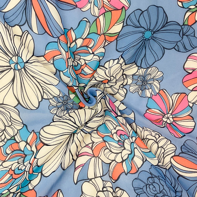 Blue-Multi Poly Floral Printed Chiffon Woven Fabric