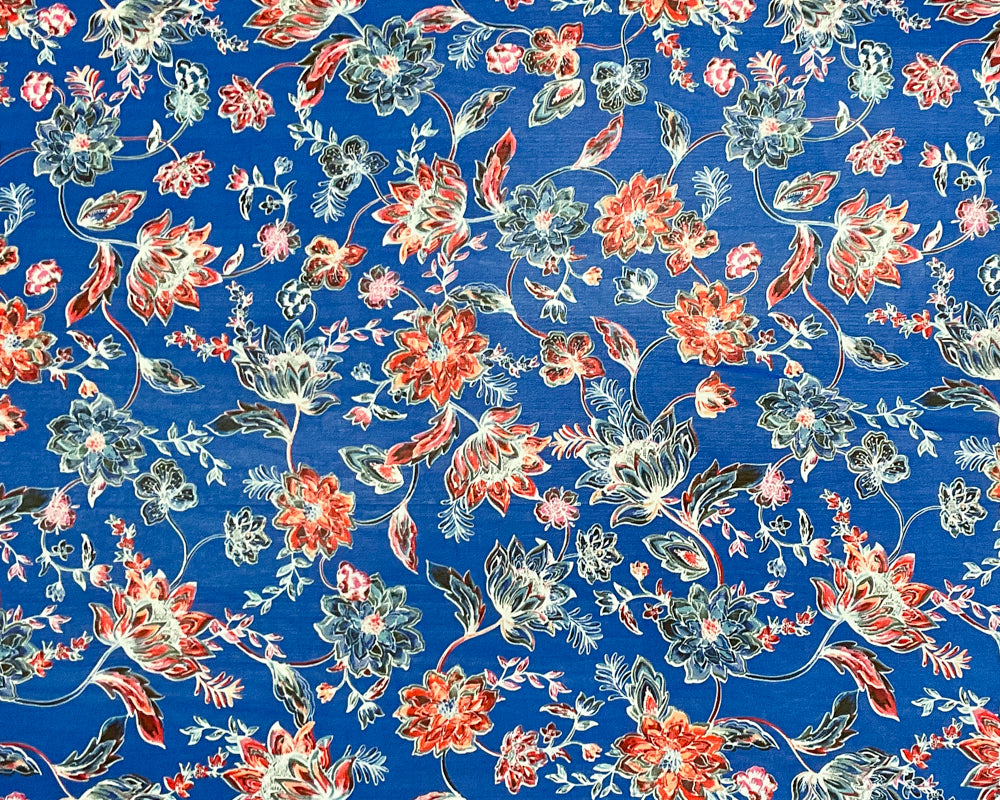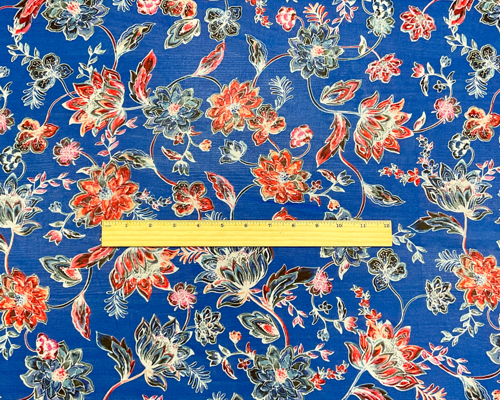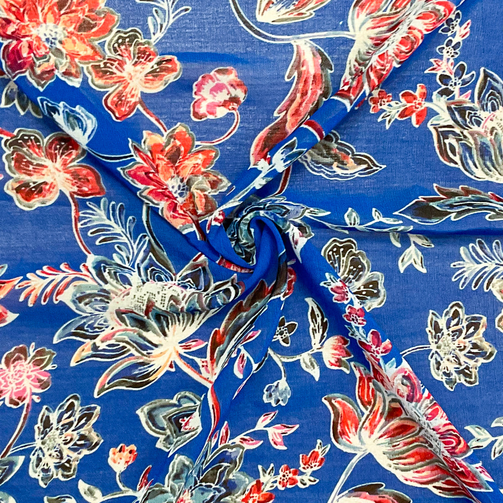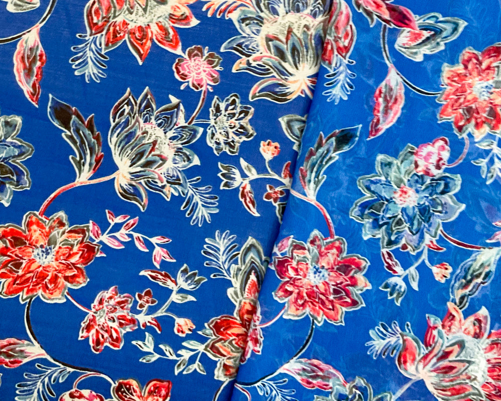 Blue-Red-Multi Poly Floral Printed Chiffon Woven Fabric
