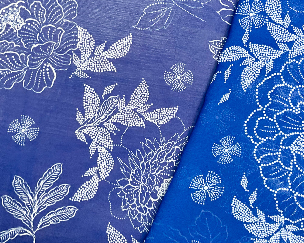Blue-White Poly Abstract Printed Chiffon Woven Fabric