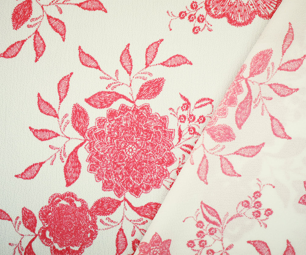 Cherry Pink-White Floral Printed Stretch Spandex Pebble Crepe Georgette Woven Fabric