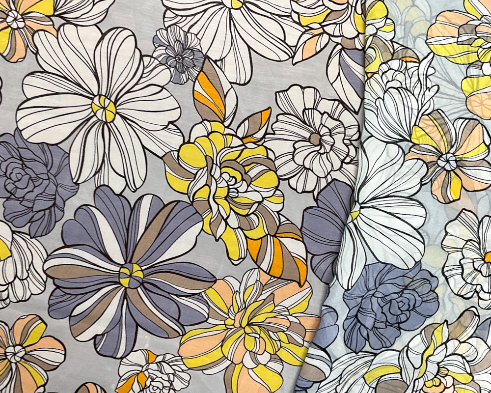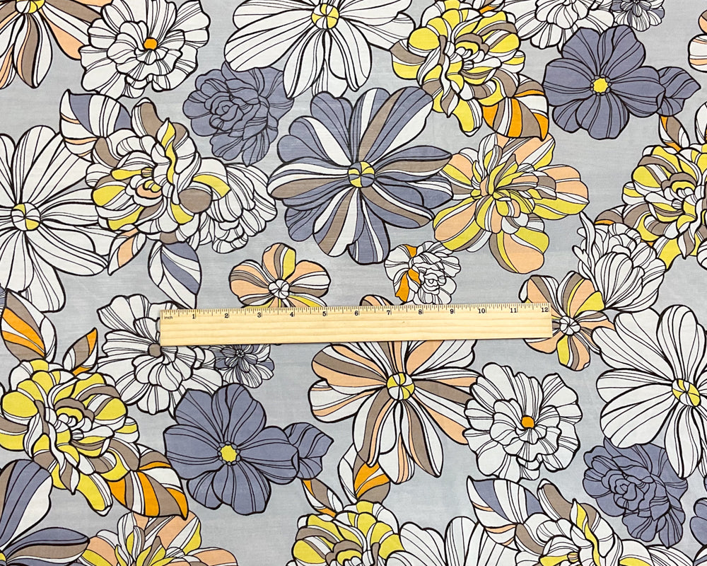 Gray-Purple-Multi Poly Floral Printed Chiffon Woven Fabric