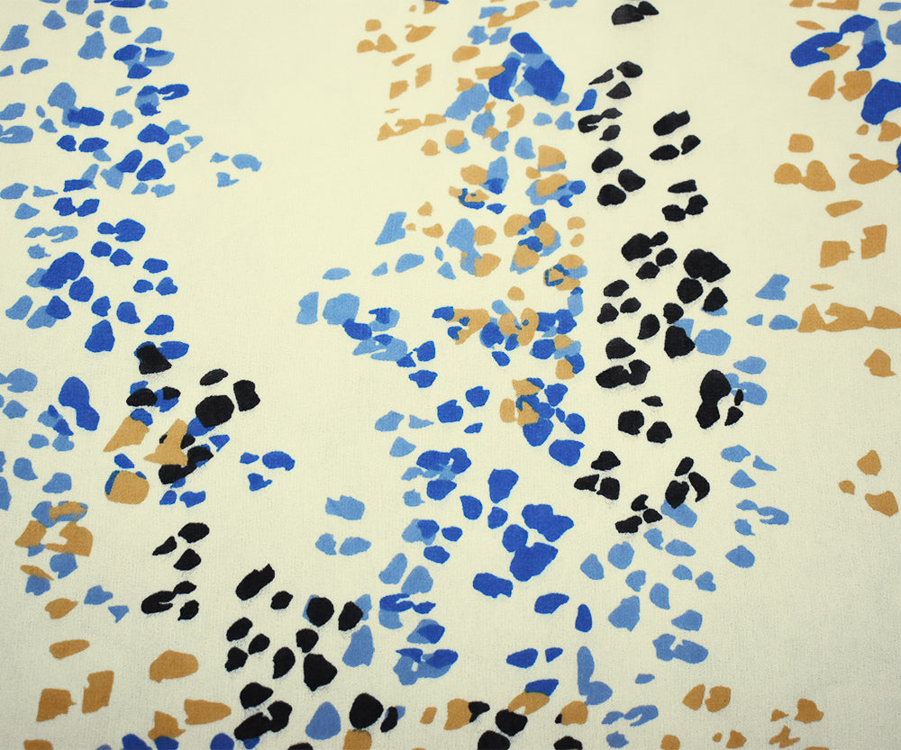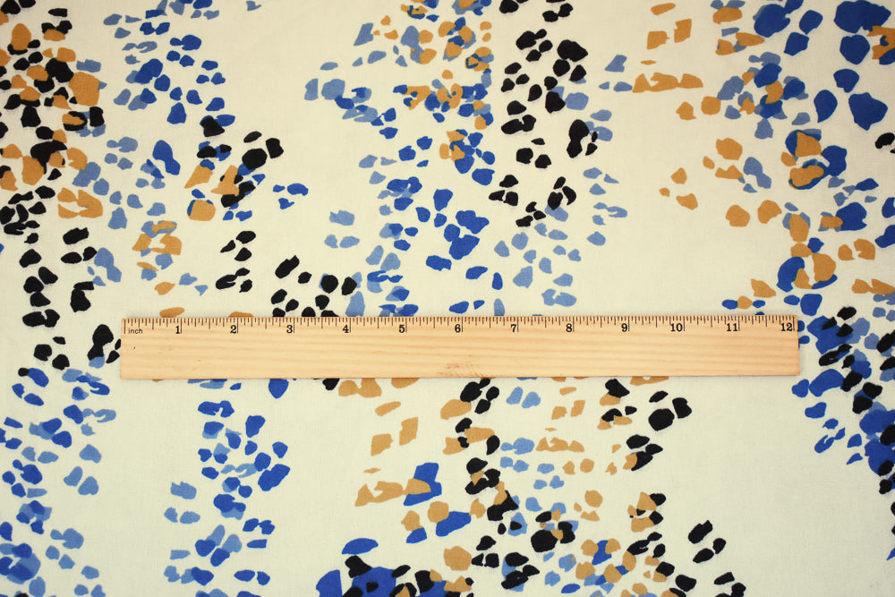 Ivory-Blue-Multi Abstract Spots Printed Poly Chiffon Woven Fabric
