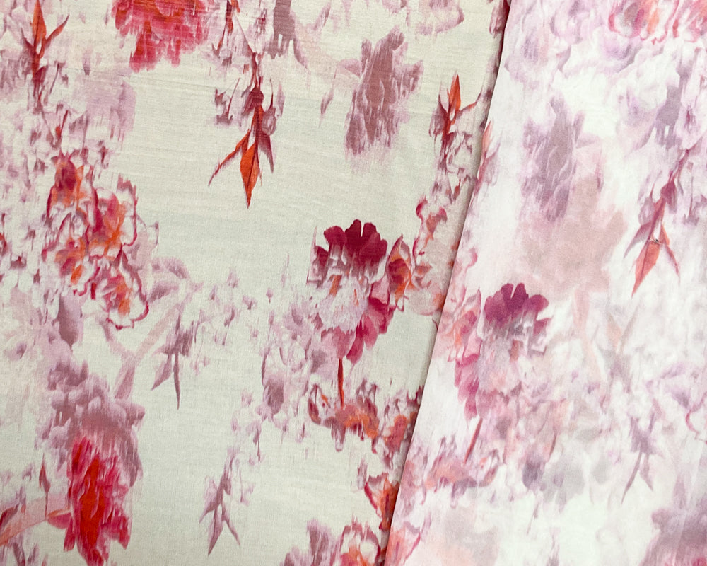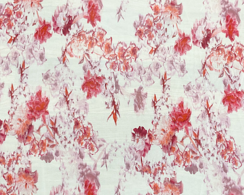 Ivory-Pink-Multi Poly Floral Printed Chiffon Woven Fabric