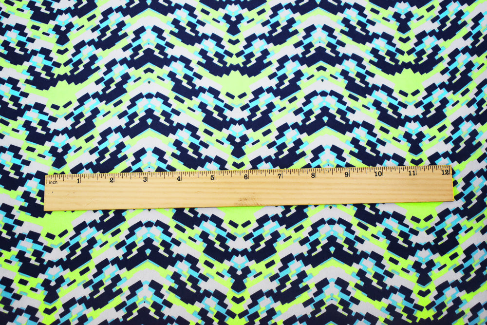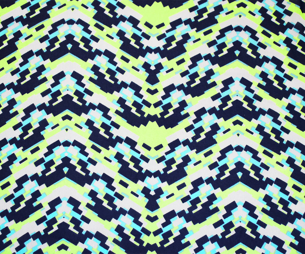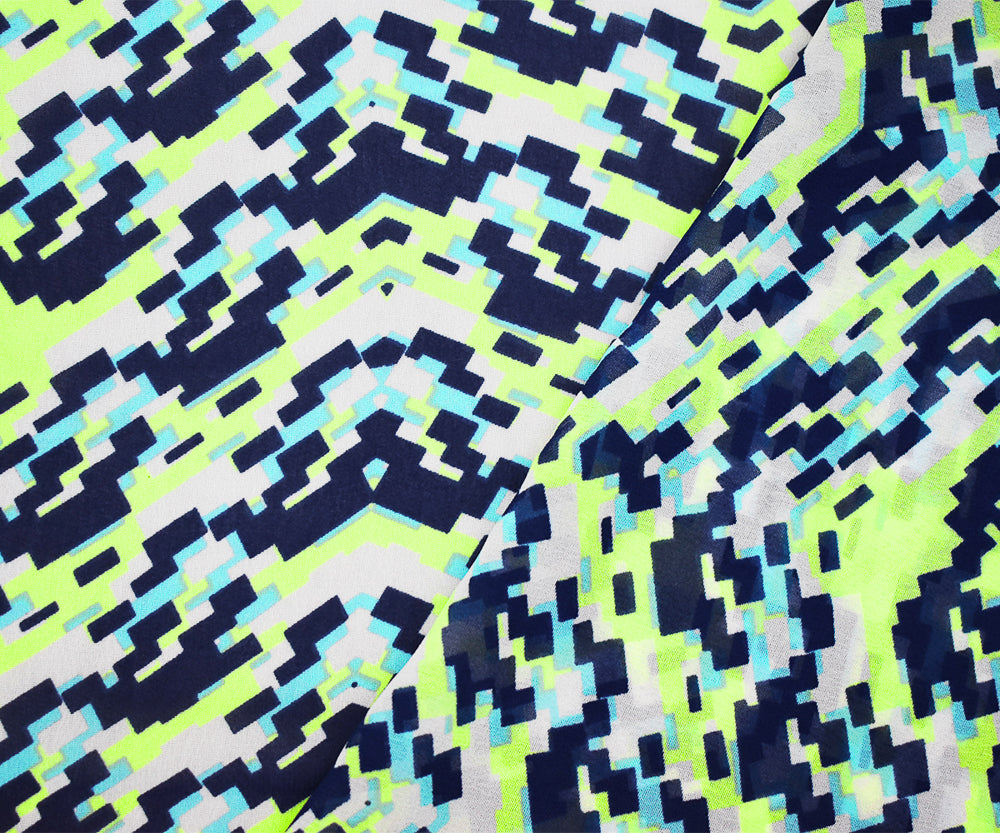 Navy-Lime Green-Multi Pixel Printed Poly Chiffon Woven Fabric