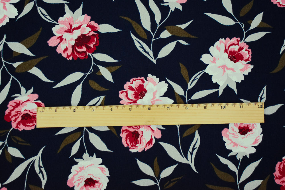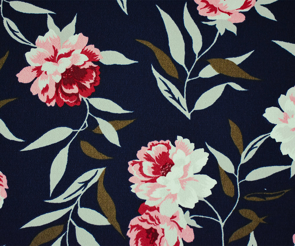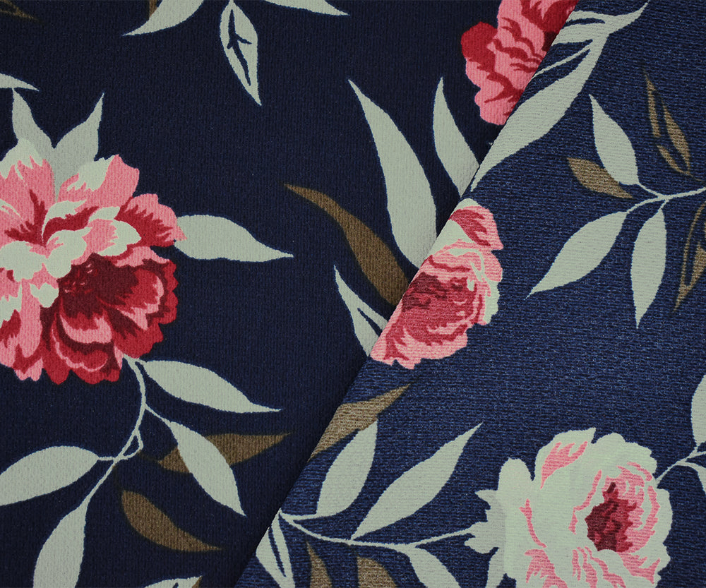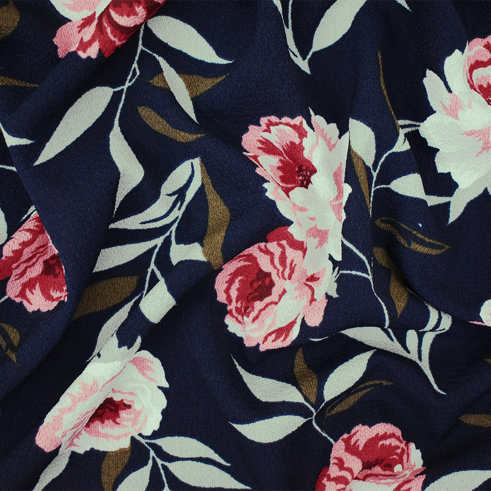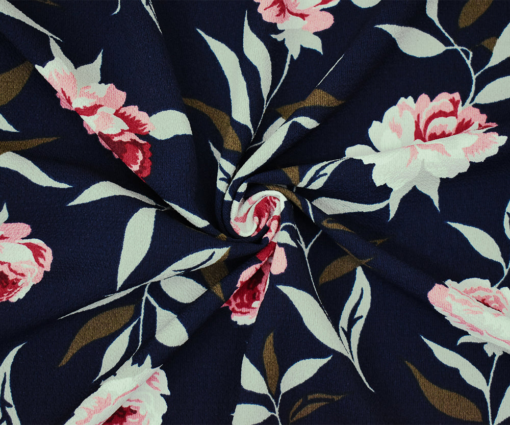 Navy-Pink-Multi Floral Printed Poly Pebble Crepe Georgette Woven Fabric
