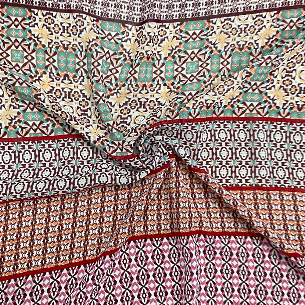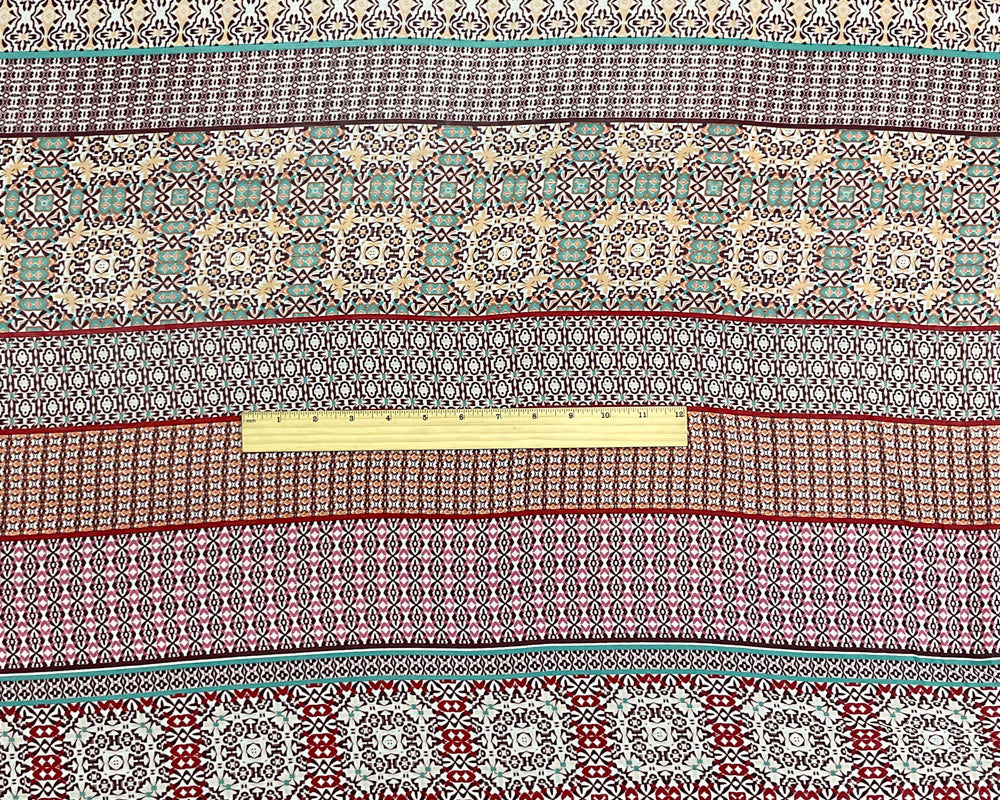 Red-Pink-Multi Poly Stripe Aztec Printed Chiffon Woven Fabric