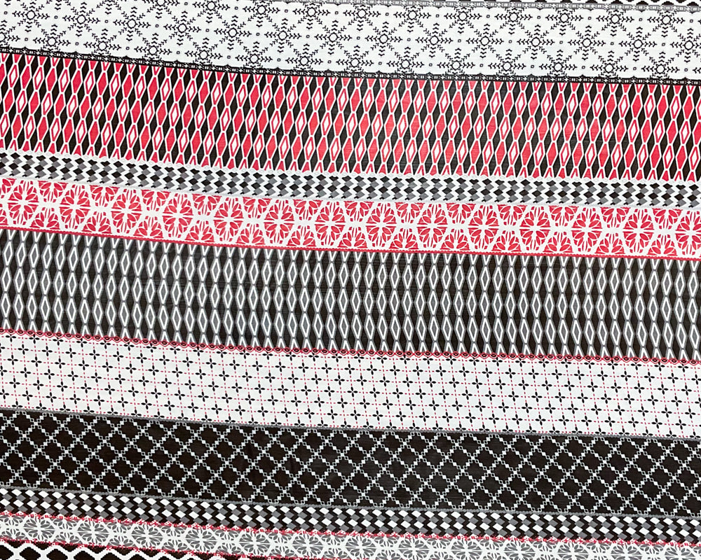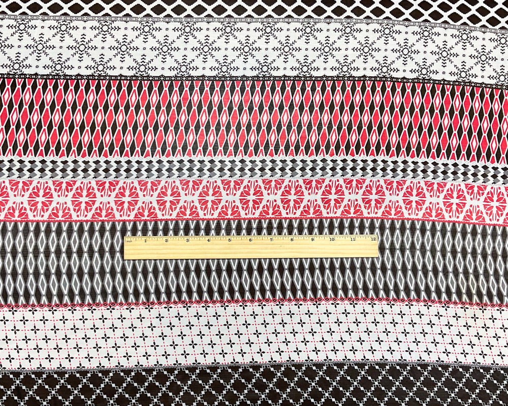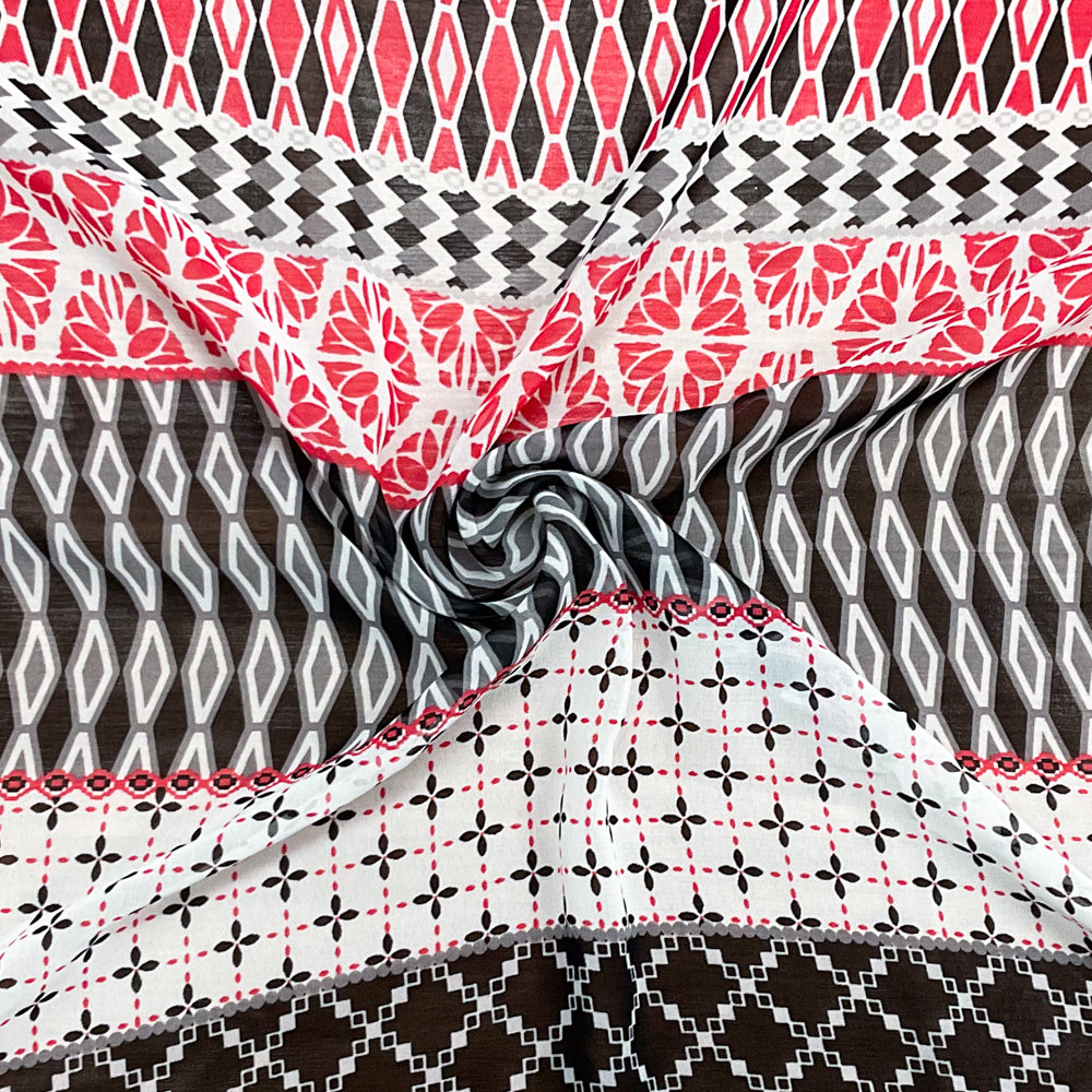 Red-White-Multi Poly Multi Pattern Printed Chiffon Woven Fabric