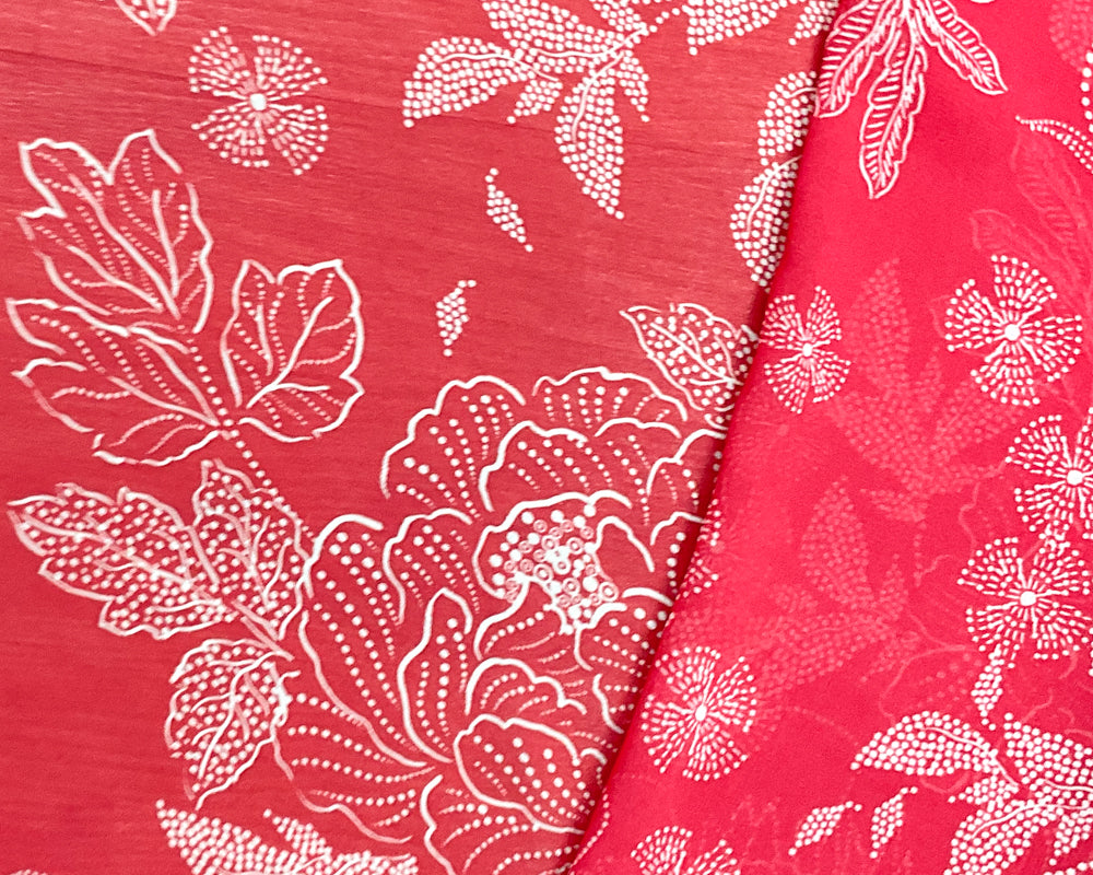 Red-White Poly Floral Printed Chiffon Woven Fabric