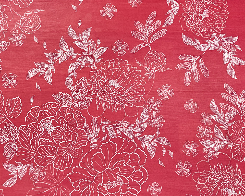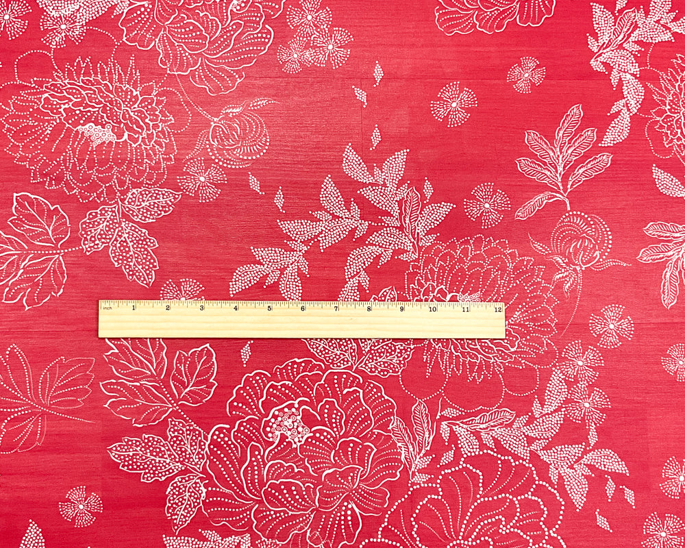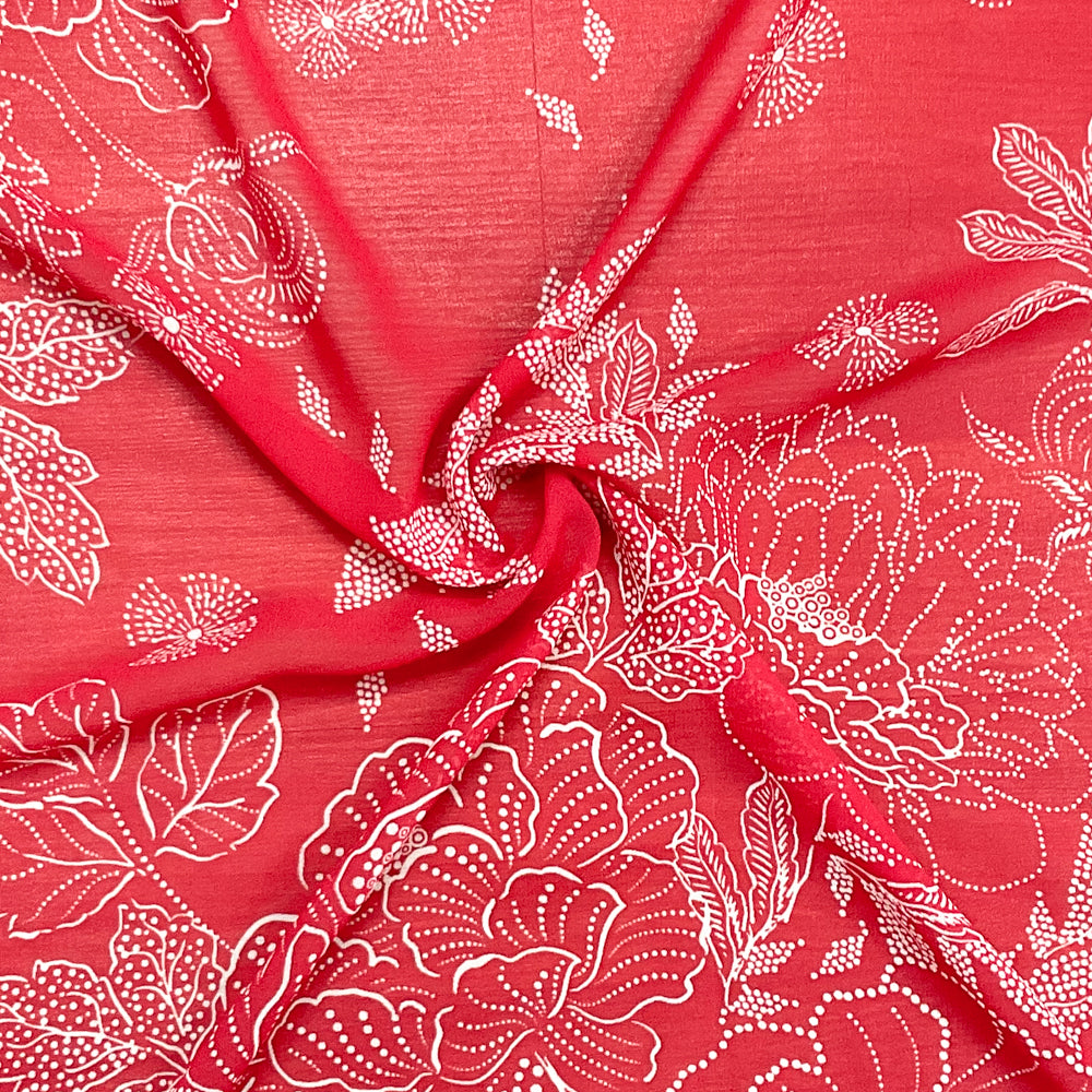 -Red-White Poly Floral Printed Chiffon Woven Fabric