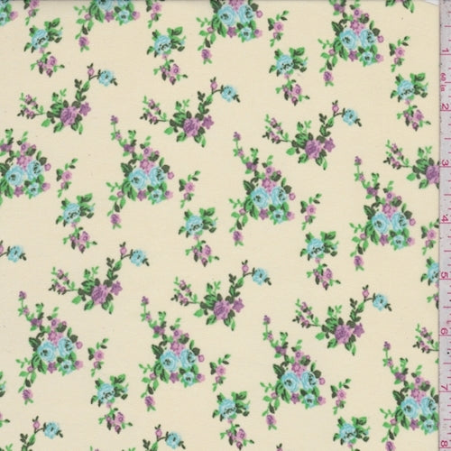 Pale Yellow Floral Cluster Crepe Georgette Fabric