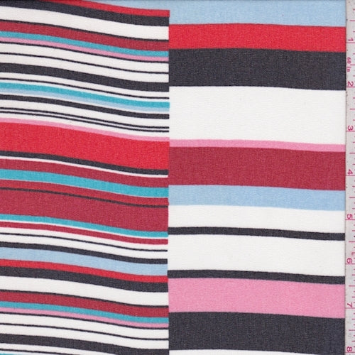 Red/Black Multi Stripe Crepe Georgette Fabric