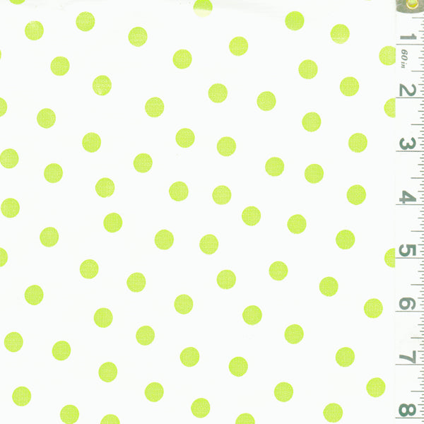 Bright Green Polka Dot Print on Off White Oilcloth Fabric