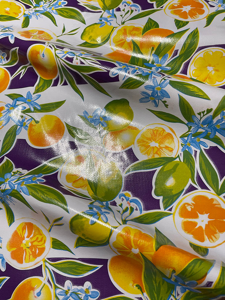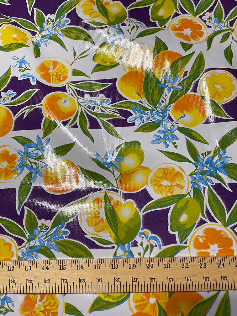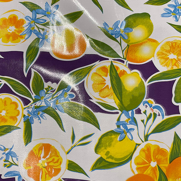 Purple Stripe Fruit Oilcloth Fabric - Reorderable