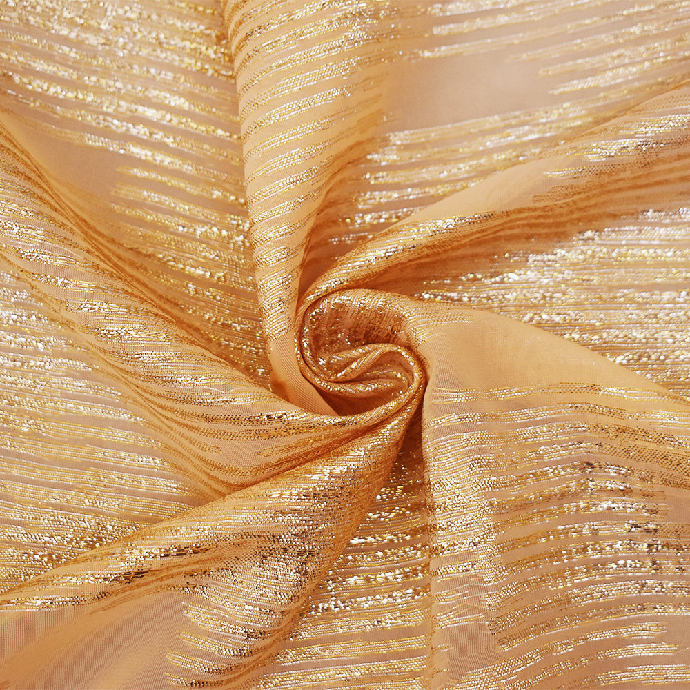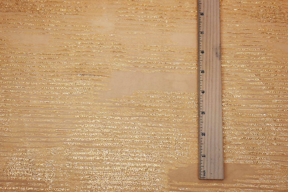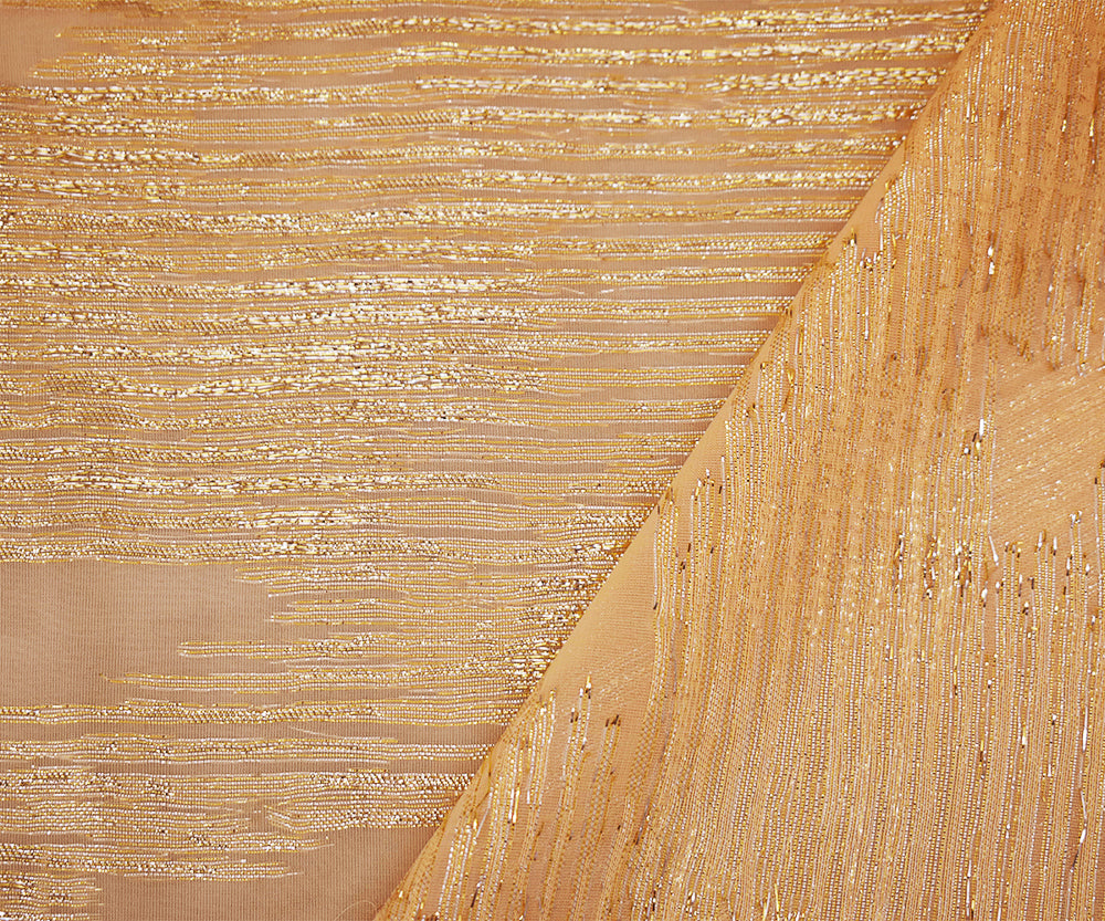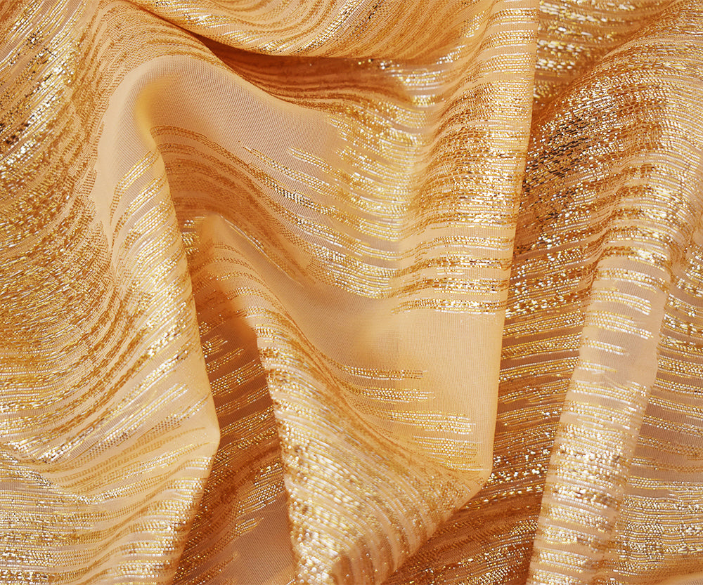 Orange-Gold-Silver Nylon Metallic Abstract Organza Woven Fabric