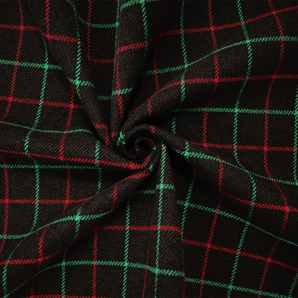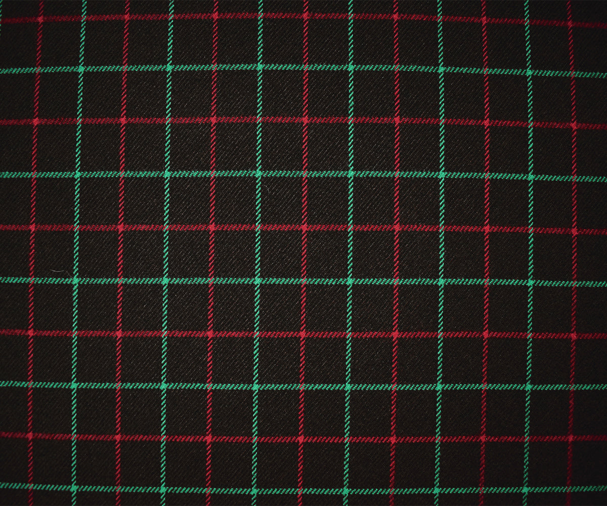 Brown-Green-Multi Poly Wool Check Twill Woven Jacketing Fabric