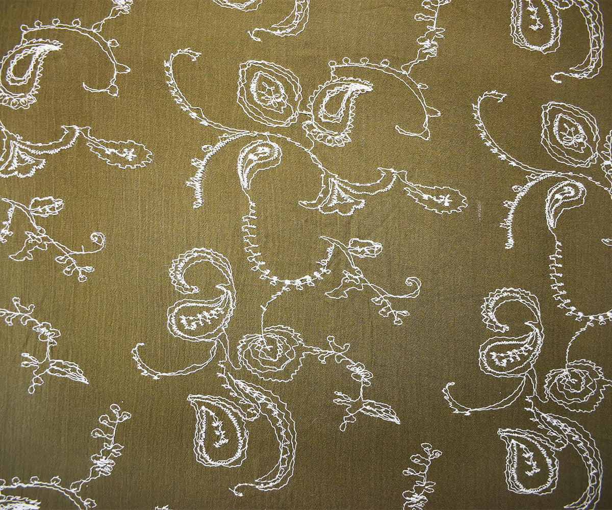 Brown Cotton Paisley Vine Embroidered Crinkled Gauze Woven Fabric