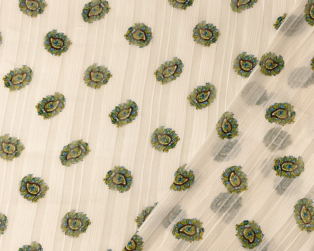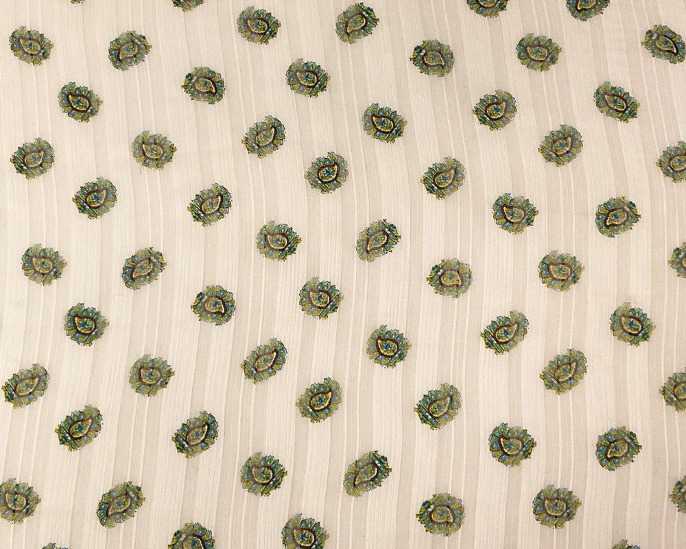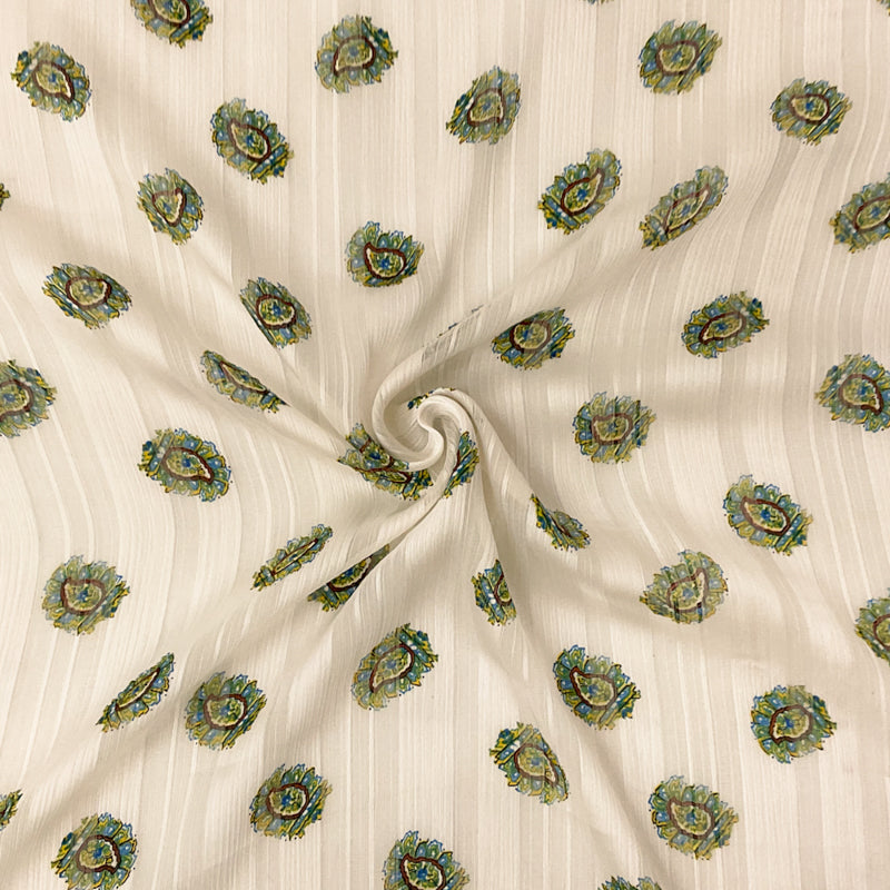 Ivory-Multi Poly Paisley Print Satin Stripe Chiffon Woven Fabric