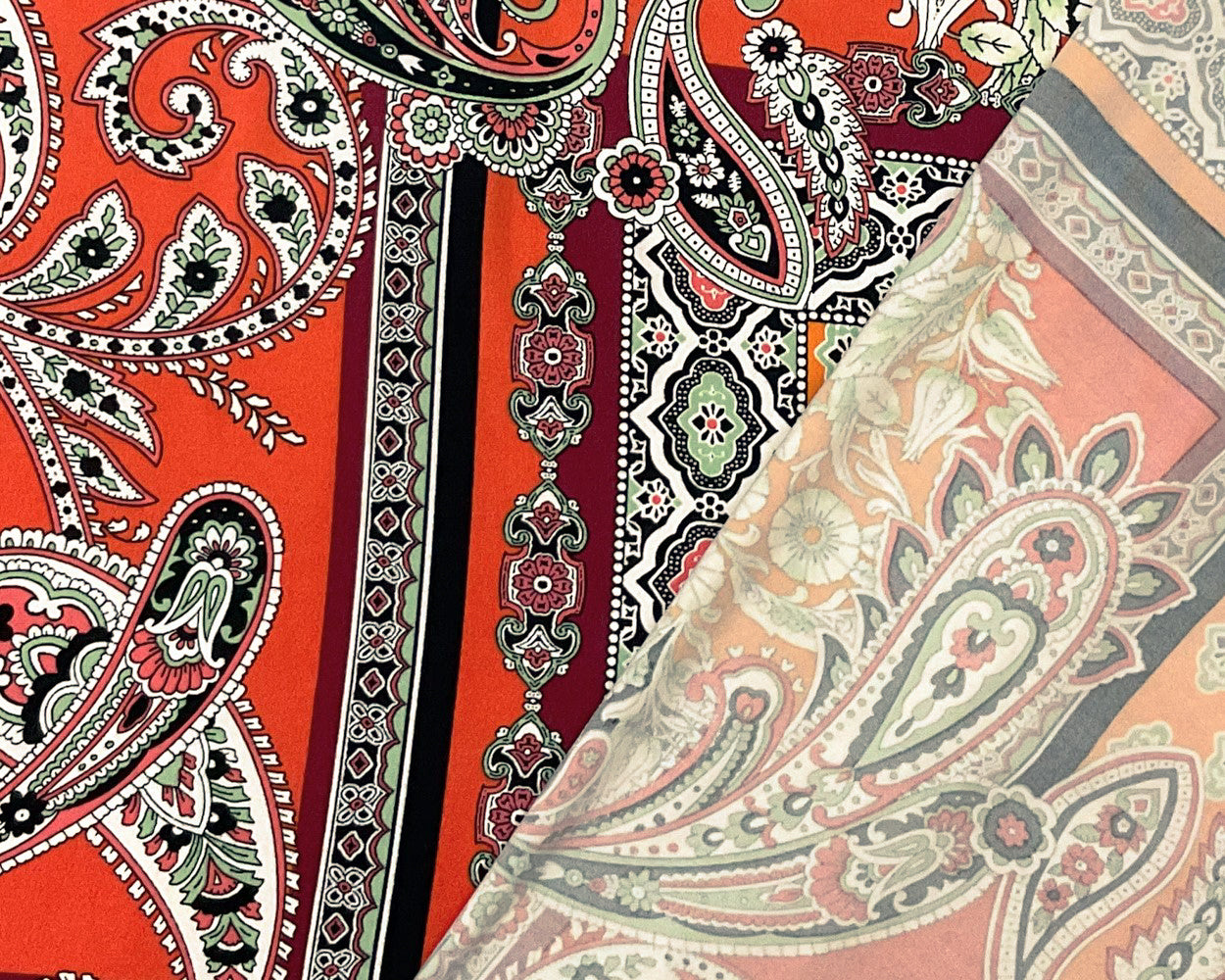 Orange-Multi Poly Spandex Stretch Paisley Print Double Brush Jersey Knit Fabric