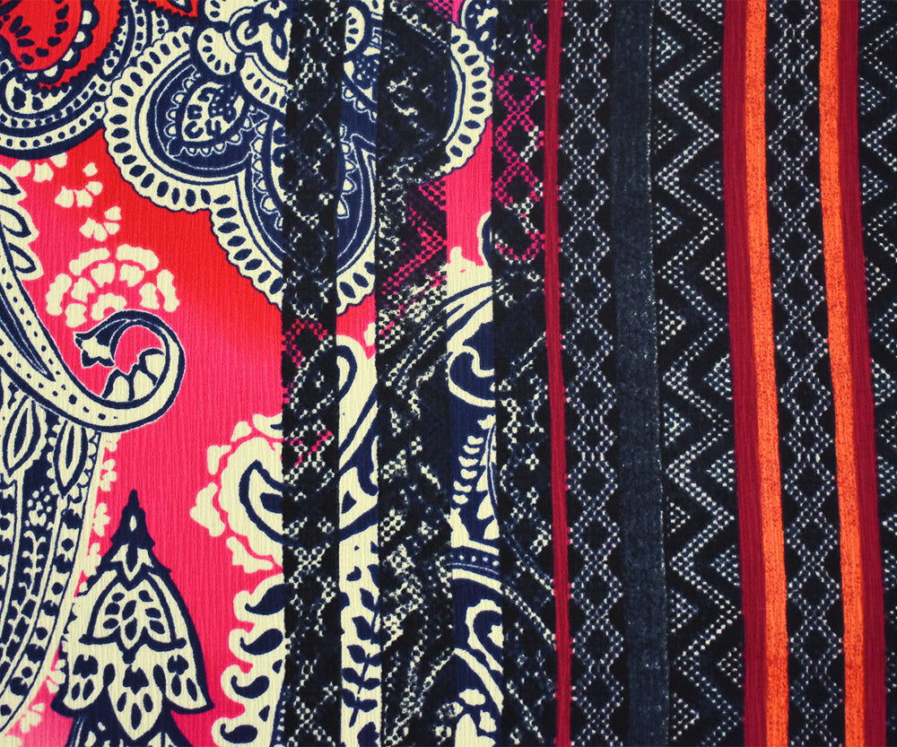 Red-Blue-Multi Paisley Border Printed Dobby Woven Fabric