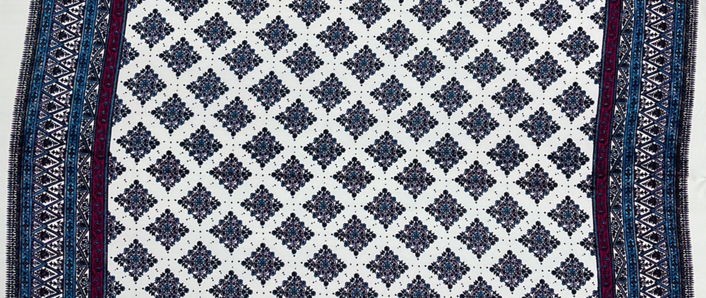 1 1/2 YD PC-White-Purple-Multi Poly Abstract Diamond Border Print Pebble Crepe Woven Fabric