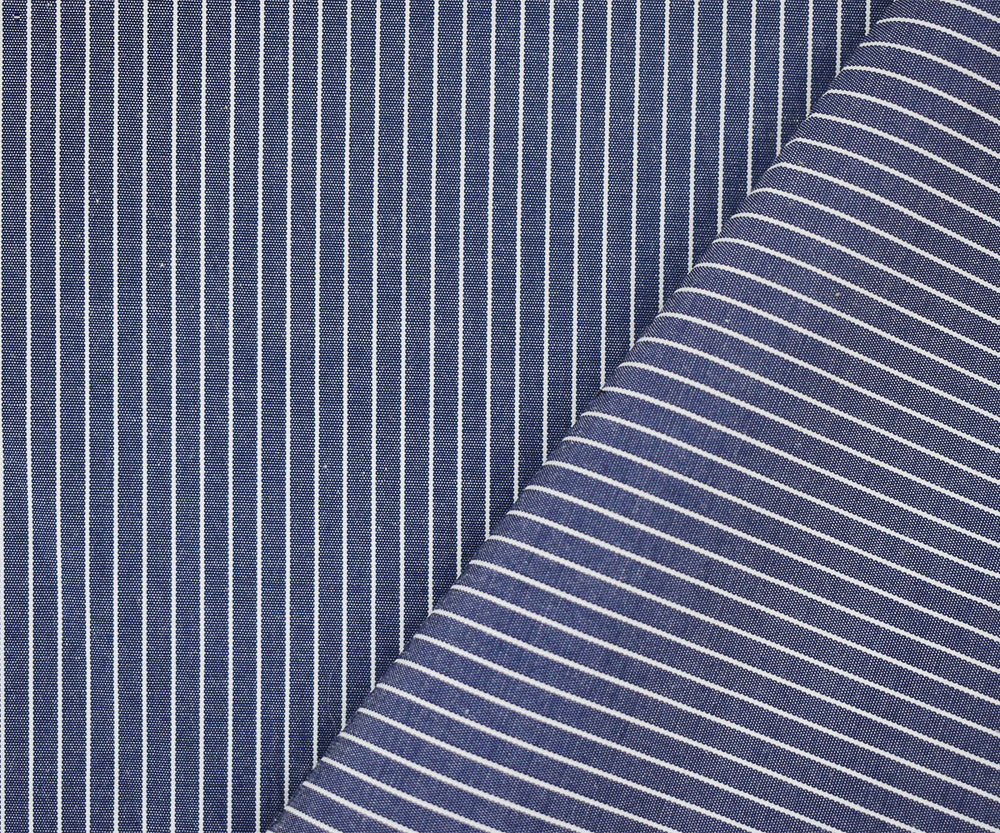 1 YD PC-Blue-White Stripe Poly Poplin Woven Fabric