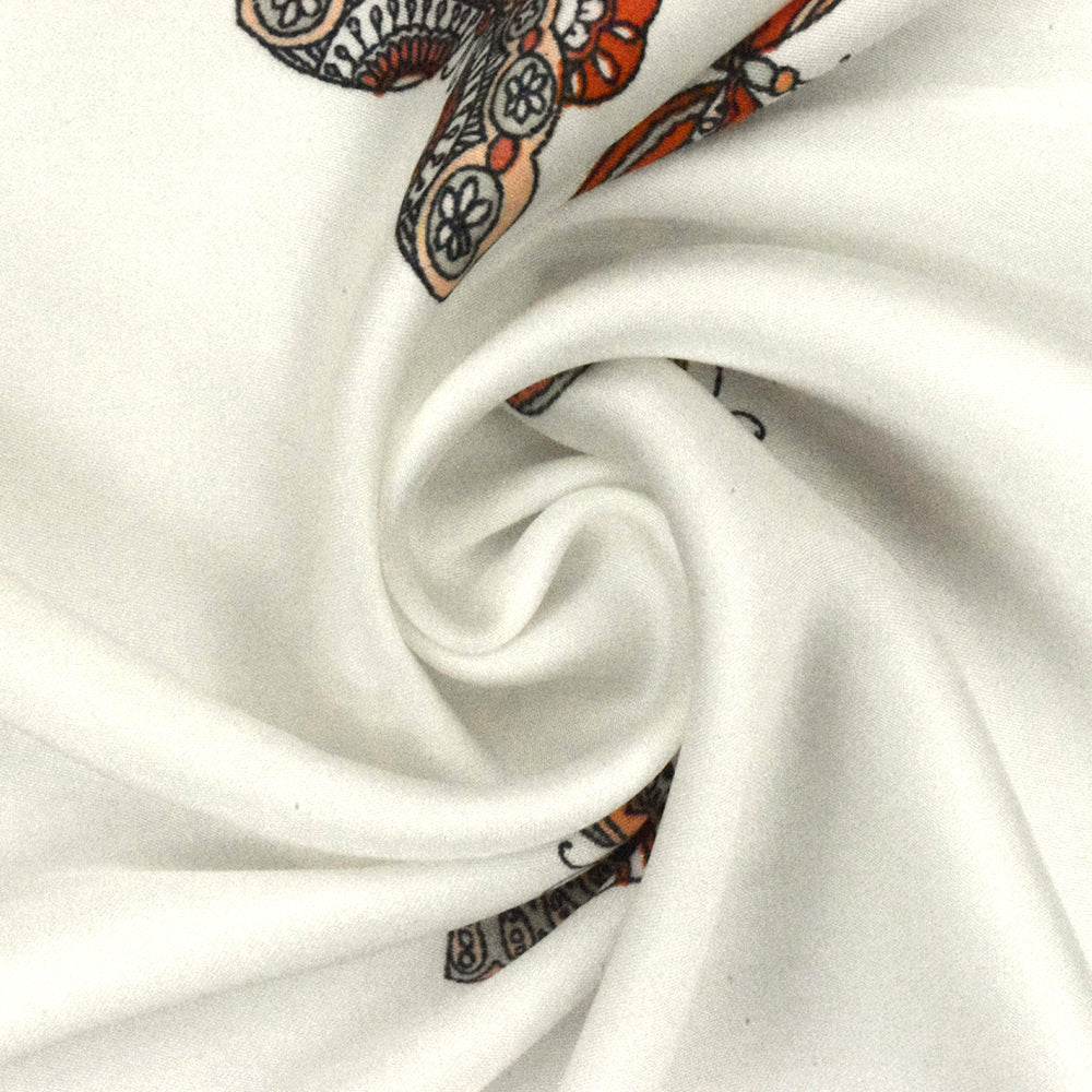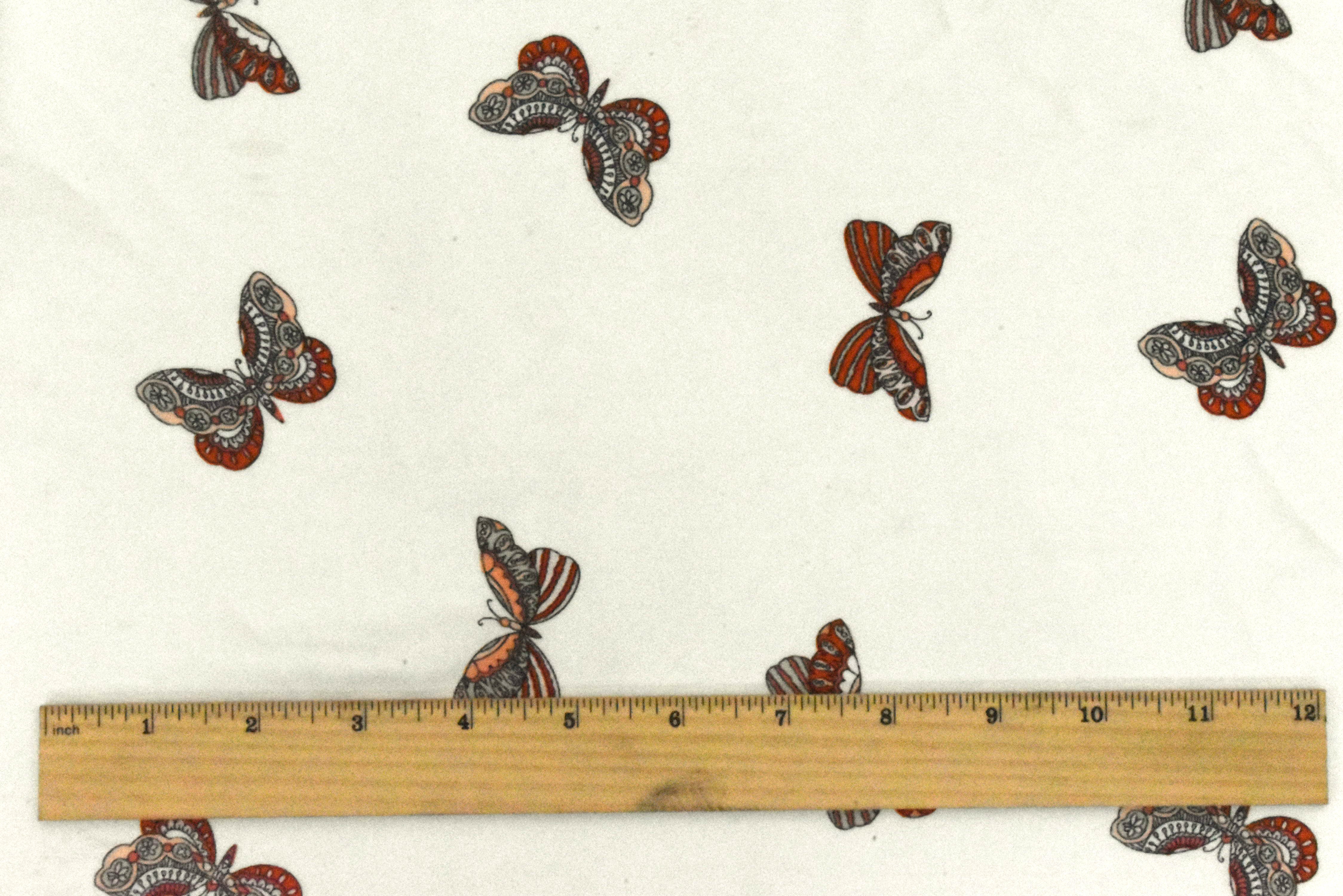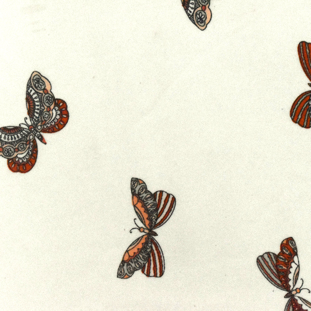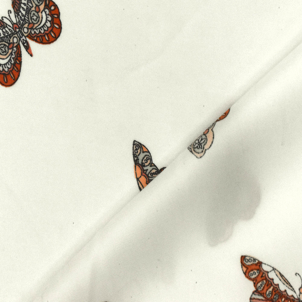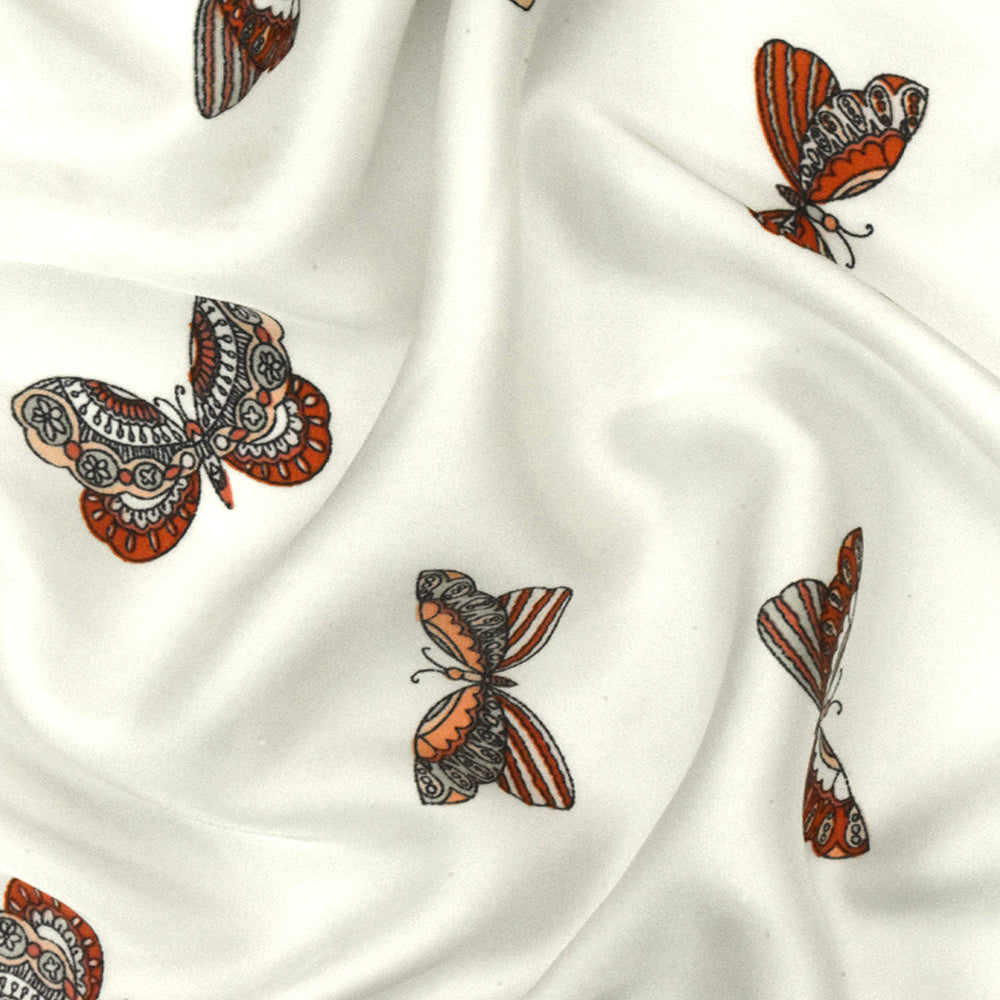 1 YD PC-Orange-Gray-Multi Butterfly Printed Charmeuse Fabric