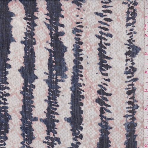 2 1/2 YD PC-Pink Beige/Ocean Blue Diamond/Stripe Silk Crinkle Chiffon Fabric