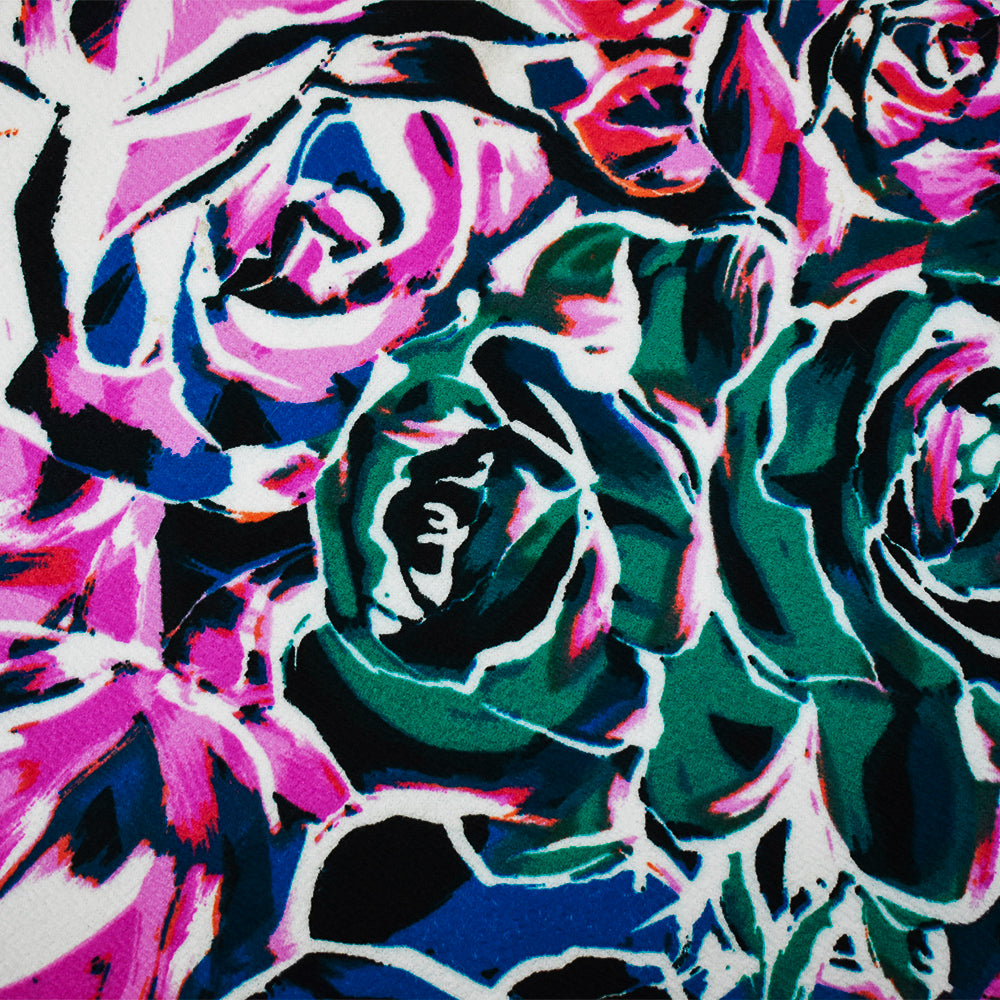 2 5/8 YD PC-Pink-Multi Nylon Poly Stretch Spandex Floral Print Crepe Double Knit Fabric