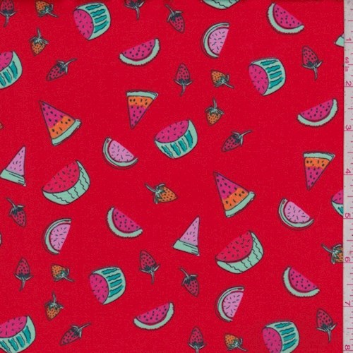 2 YD PC-Red Summer Fruit Double Brushed Jersey Knit Fabric