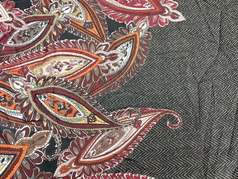 4 1/2 YD PC -Brown, Black, Red, Ivory, Orange, Gold, Tan, & Rust Multi Herringbone Paisley Poly Border Print Sheer Chiffon Fabric