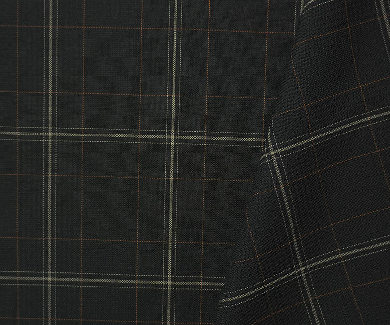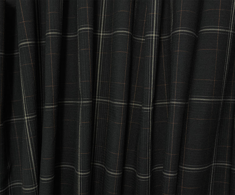 Black-Multi Poly Wool Plaid-Check Woven Shirting Fabric