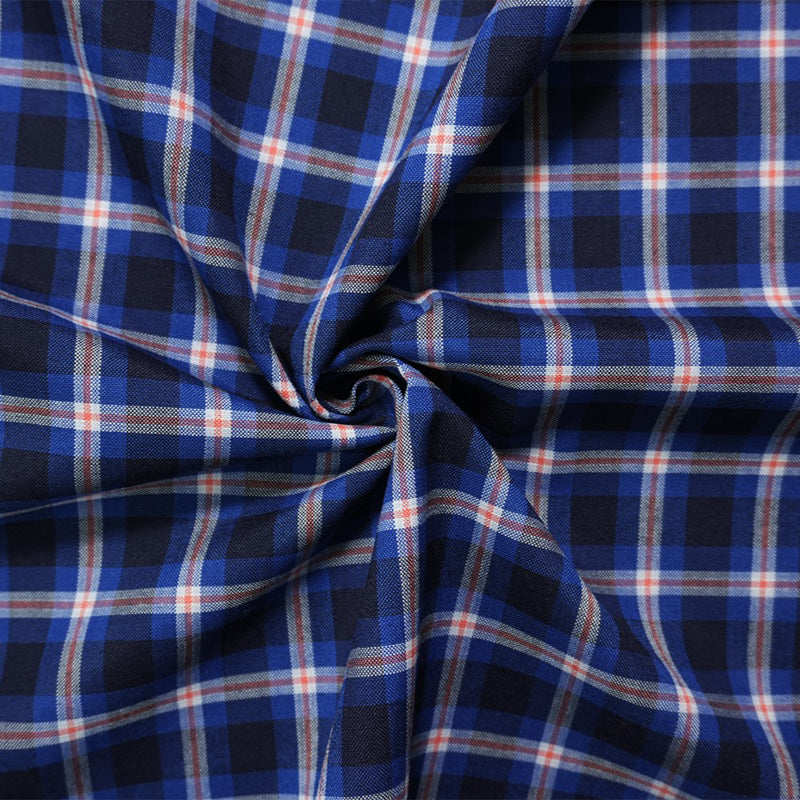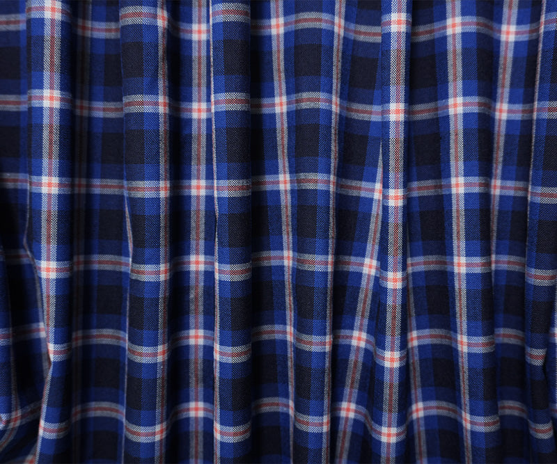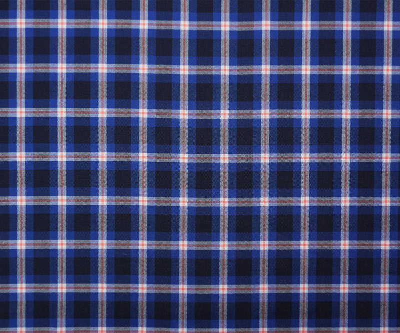 Blue-White-Orange Poly Wool Plaid Woven Shirting Fabric
